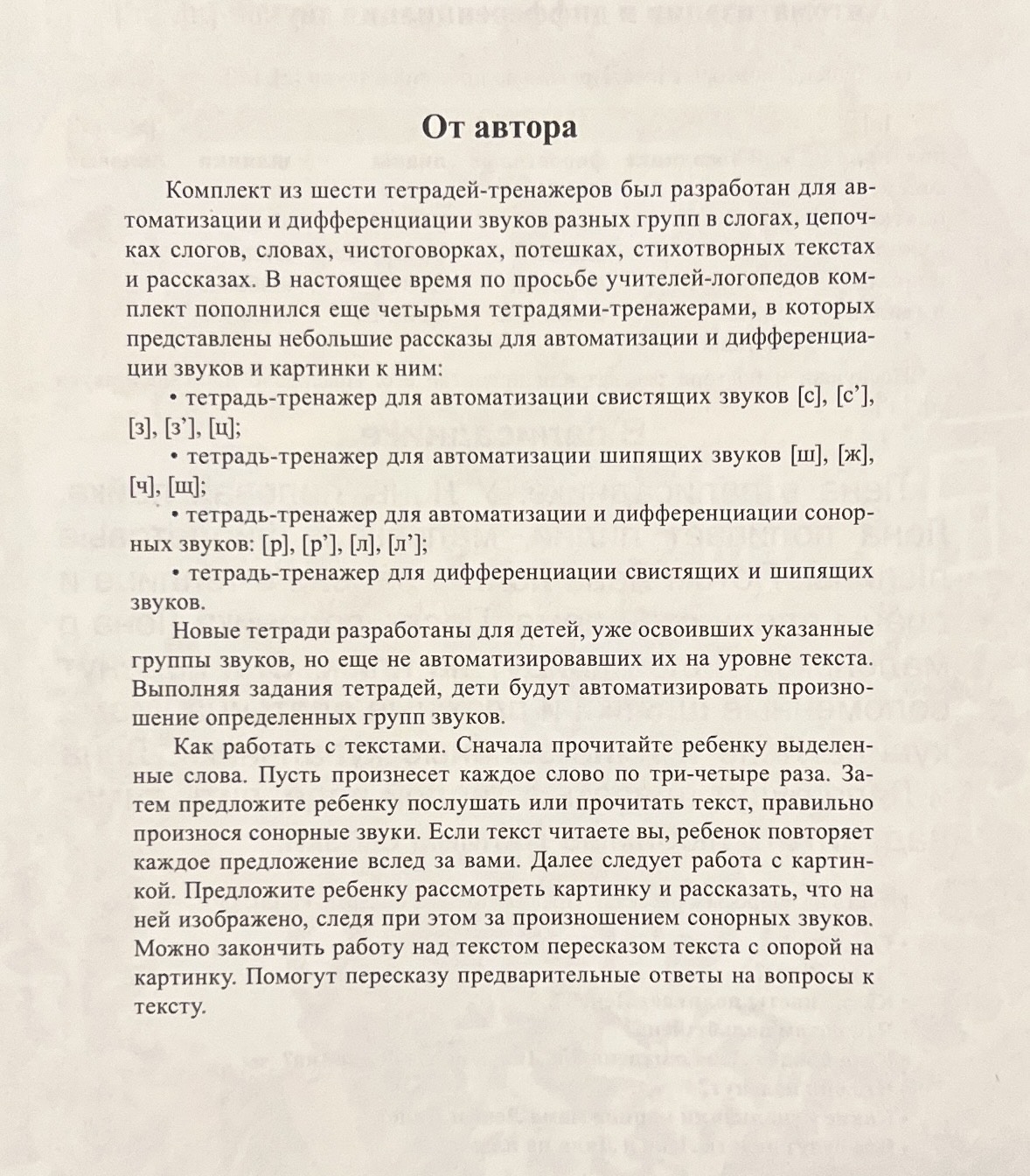 Для читающих детей добавляются такие виды работы, как автоматизация и дифференциация звуков при чтении текста. Рекомендована учителям-логопедам ДОО и школьных логопедических пунктов, воспитателям ДОО, родителям дошкольников.