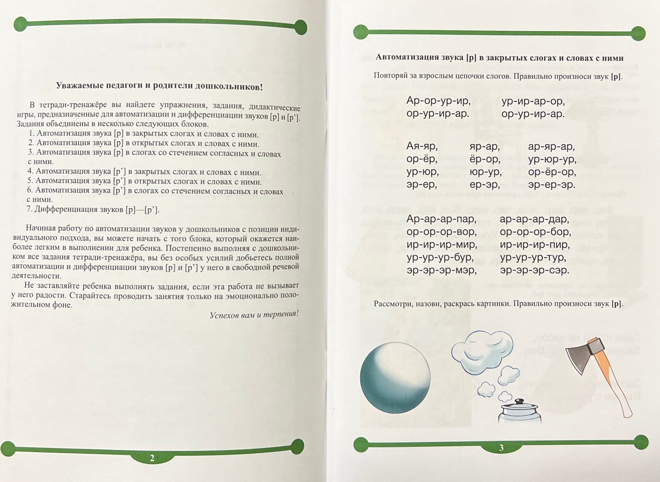 Тетрадь-тренажер для автоматизации произношения и дифференциации звуков [ р ] и [ р' ]