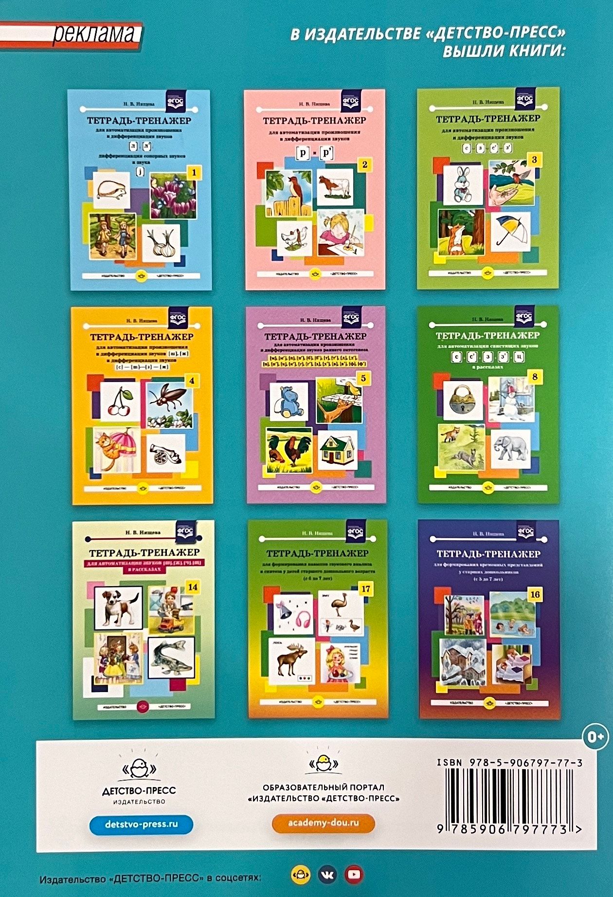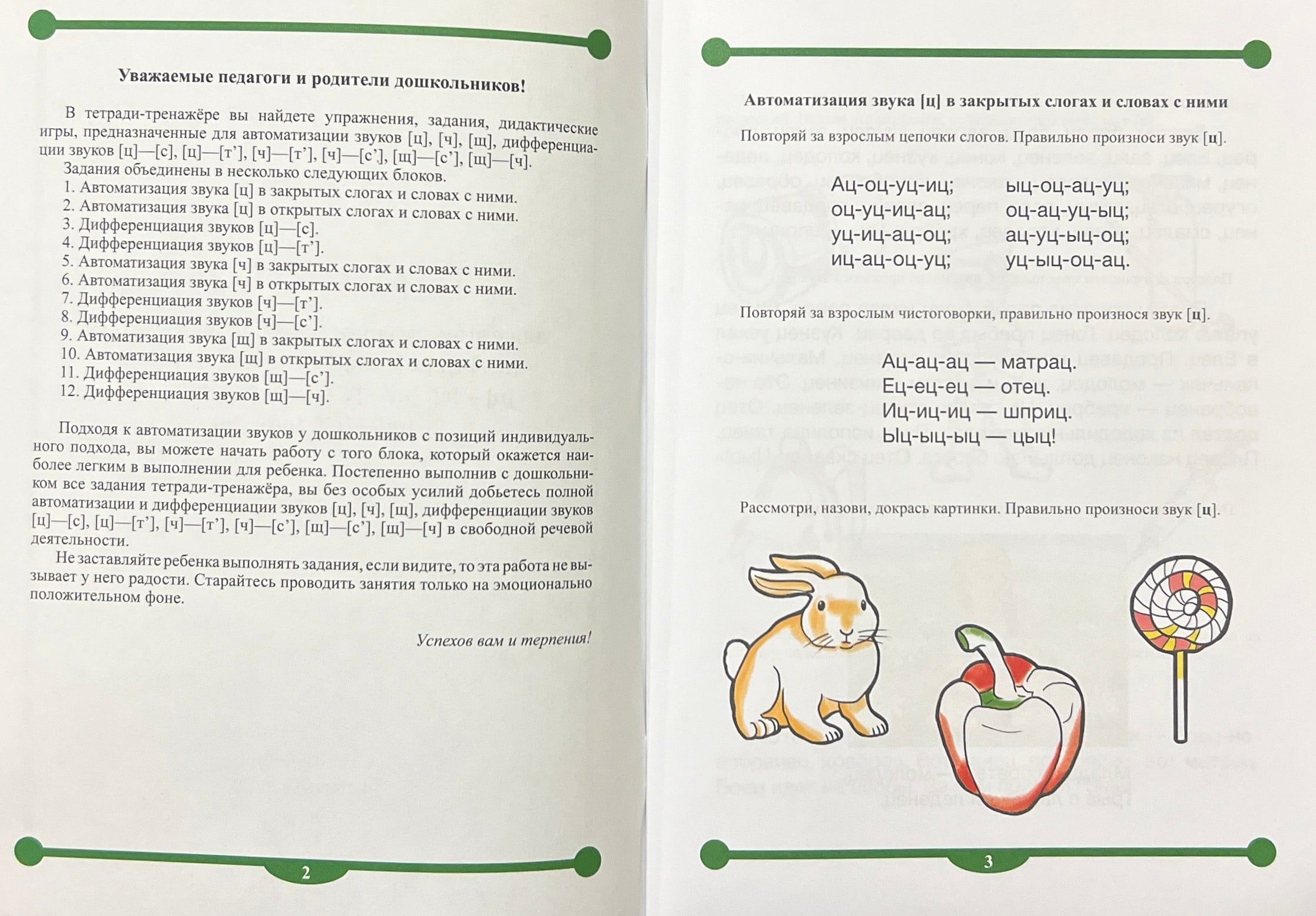 Тетрадь-тренажер для автоматизации произношения звуков [ц], [ч], [щ], дифференциации звуков [ц] - [с], [ц] - [т'], [ч] - [т'], [ч] - [с'], [щ] - [с'], [щ] - [ч]