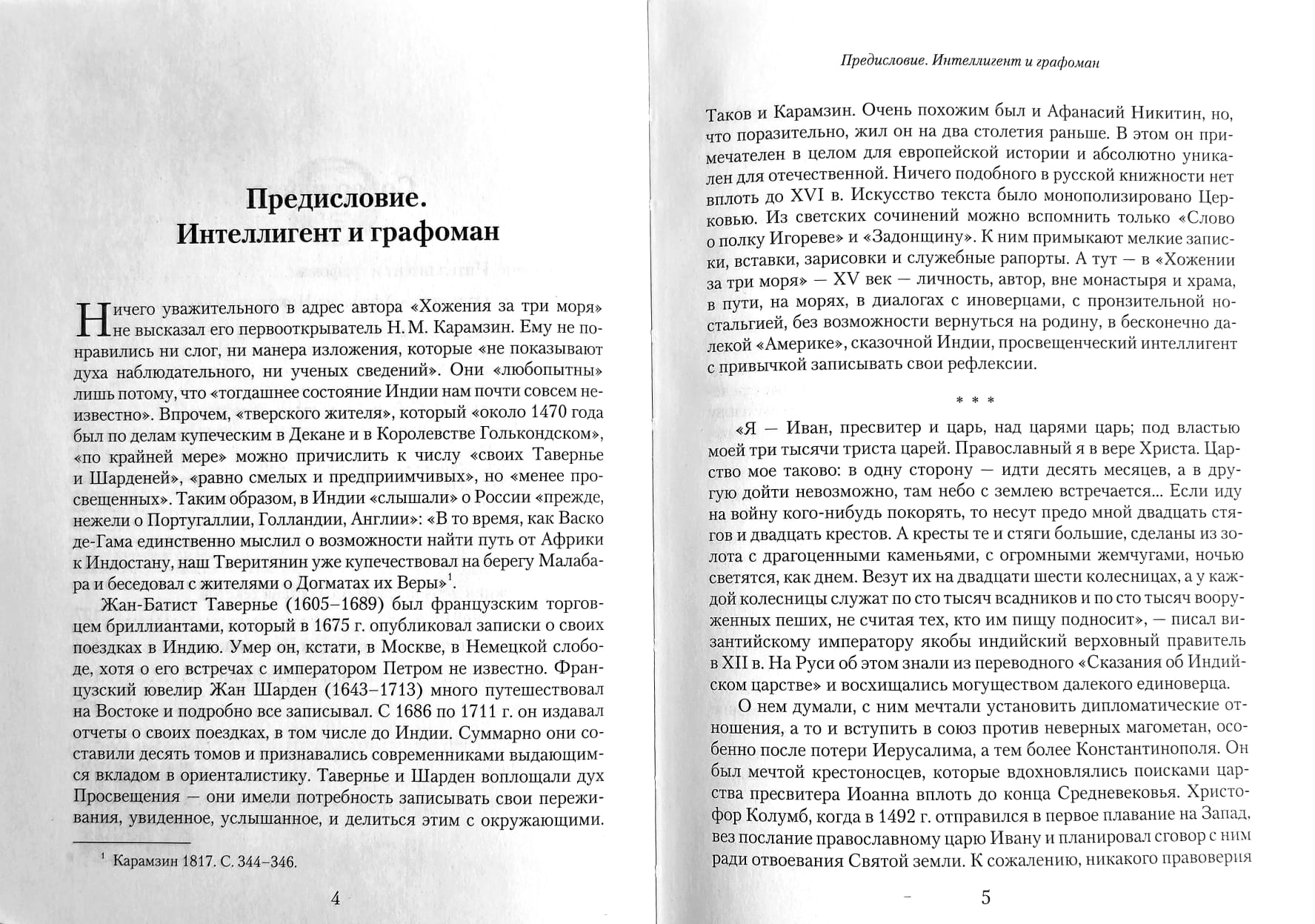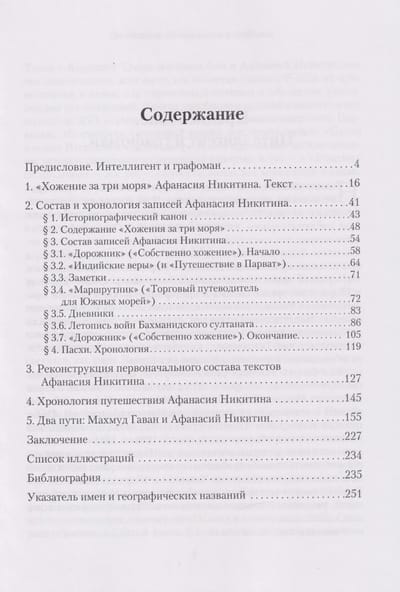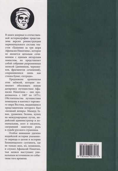 В книге впервые в отечественной историографии представлена версия реконструкции первоначального состава текстов «Хожения за три моря Афанасия Никитина», которое не является цельным сочинением с единым авторским замыслом, но представляет собой собрание разрозненных записей (дневников, черновиков, фрагментов сочинений), сохранившихся лишь как стопка бумаг, «тетради». Предложена хронология этих записей, которая позволяет обосновать новую датировку путешествия Афанасия Никитина — оно продолжалось с 1467 по 1475 г. Обстоятельства путешествия помещены в контекст торгового мира Востока, выдающимся представителем которого был «великий визирь» Махмуд Гаван, уроженец Гиляна, купец на международных путях, индийский администратор и военачальник, поэт и писатель, сыгравший заметную роль в судьбе русского странника. Особое внимание уделено индийской истории указанного периода в целом и истории Бахманидского султаната, где не только жил, но, возможно, и служил Афанасий Никитин, чьи записи выступают уникальным источником по событиям того времени.