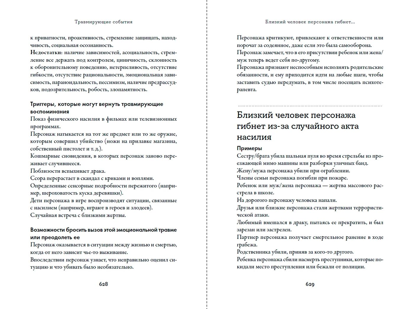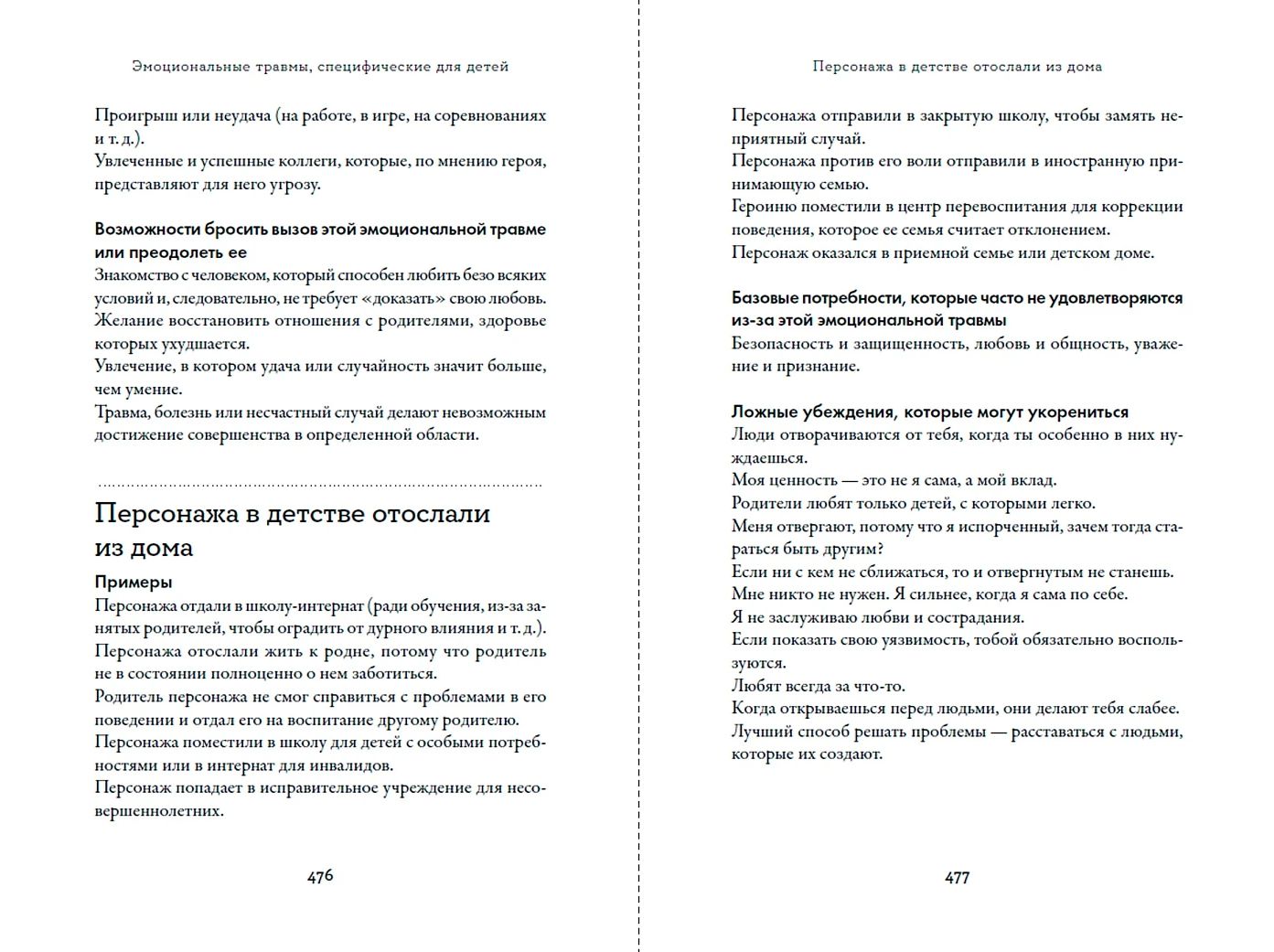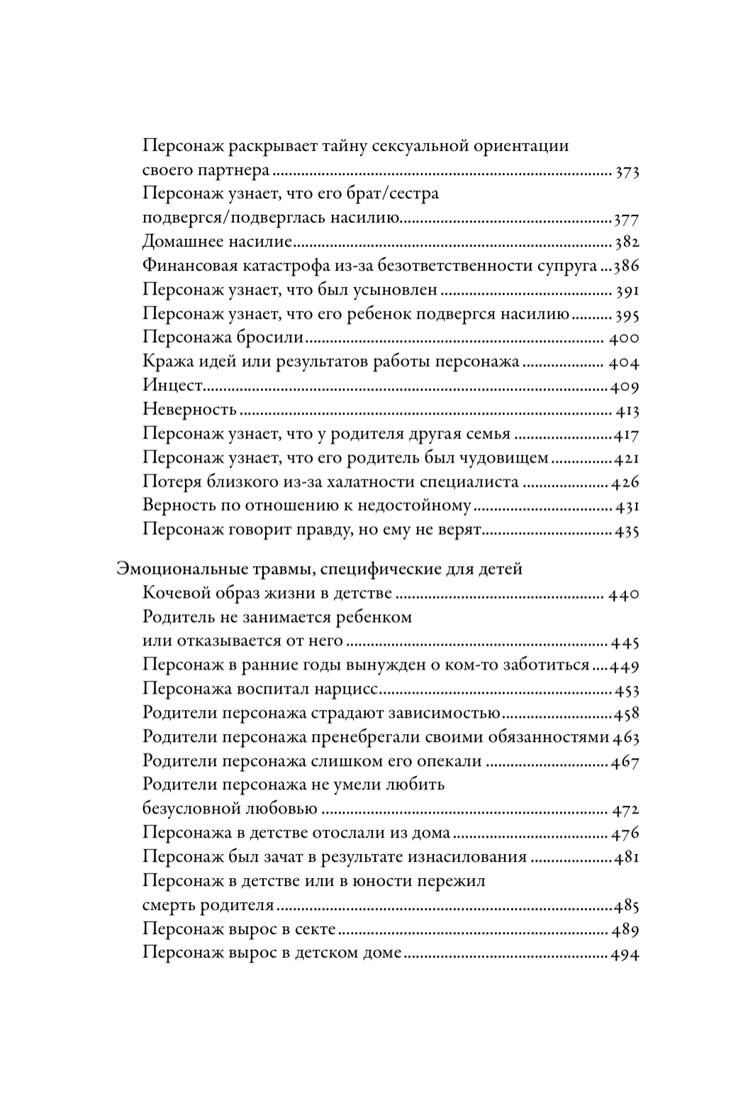 Чтобы создать убедительных героев, нужно продумать не только их место в истории, но и предшествующий описываемым событиям опыт. Ничто в прошлом персонажа не может быть более разрушительным, чем эмоциональные травмы. Их последствия могут изменить личность, повлиять на убеждения и подорвать способность достигать значимых целей, что отразится на развитии всего повествования. Предлагаемый авторами анализ истории персонажа позволяет показать читателям опыт героя таким образом, чтобы это было увлекательно и откровенно, избегая излишних подробностей. Благодаря этому руководству вы сумеете укоренить создаваемых персонажей в реальности, наделив их аутентичной травмой, вызывающей трудности и в то же время побуждающей стремиться к внутреннему росту, чтобы преодолеть ее.