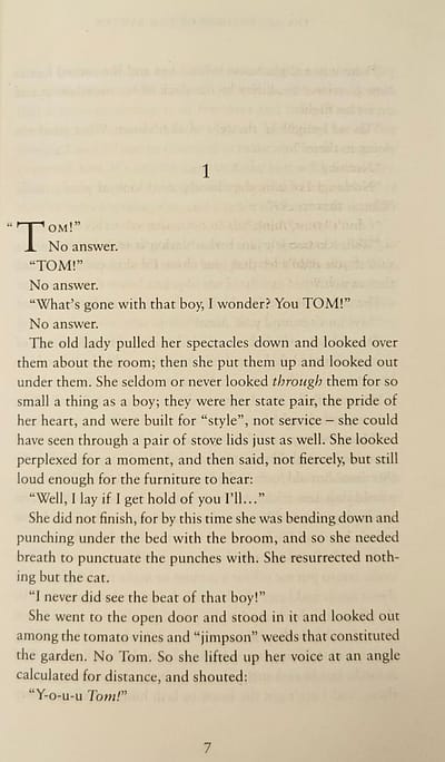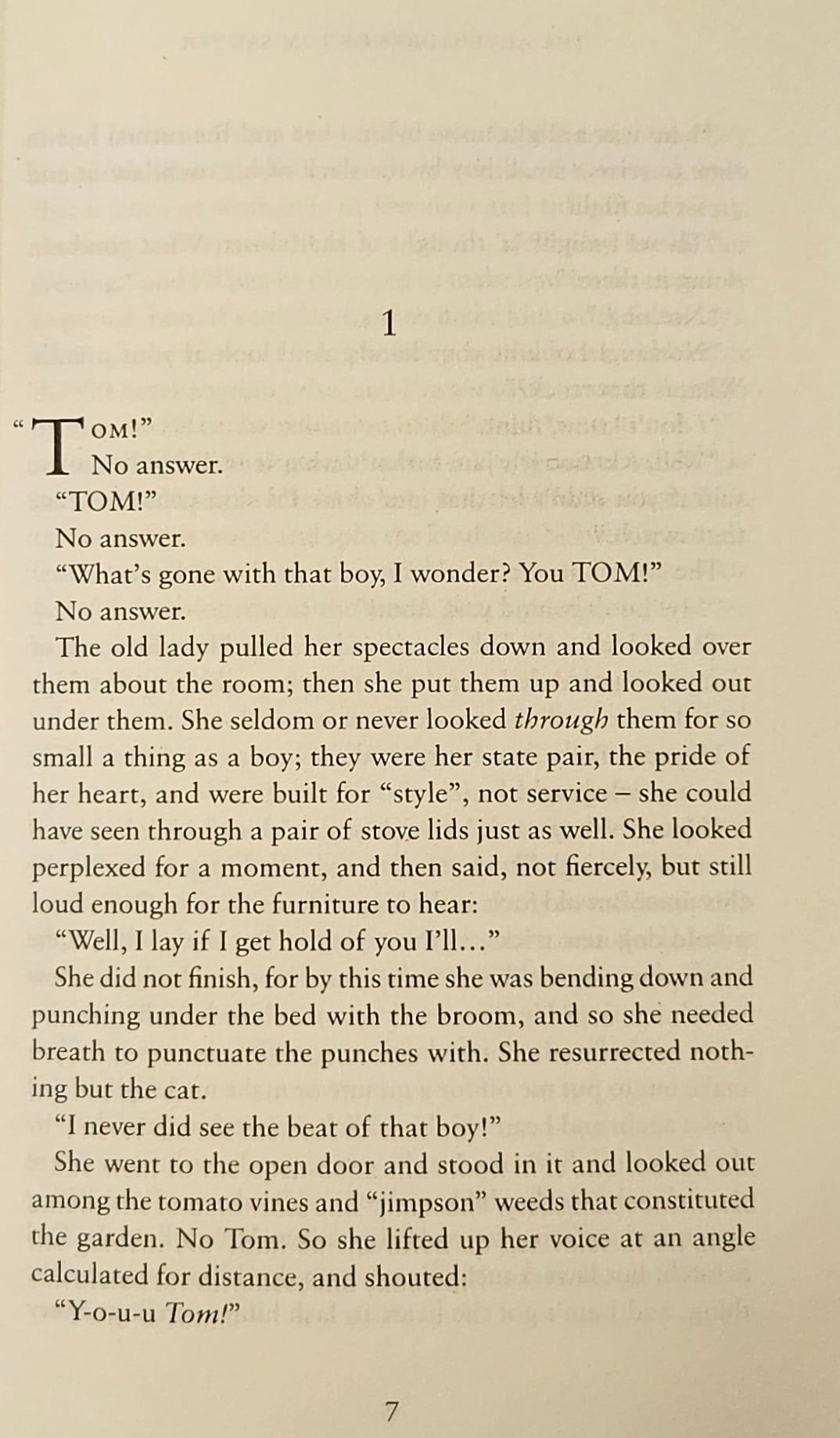 The Adventures of Tom Sawyer charts the escapades of a thirteen-year-old boy growing up on the banks of the Mississippi. Testing the patience of his aunt Polly, the bold and sharp-witted Tom Sawyer frequently skips school in search of excitement, and the scrapes he gets into with his friend Huckleberry Finn range from innocent japes to more serious events such as the witnessing of a murder.