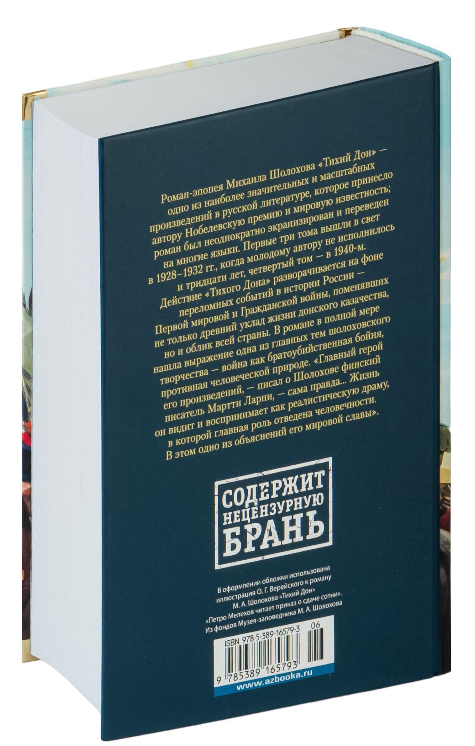 Роман-эпопея Михаила Шолохова «Тихий Дон» – одно из наиболее значительных и масштабных произведений в русской литературы, которое принесло автору Нобелевскую премию и мировую известность; роман был неоднократно экранизирован и переведен на многие языки. Первые три тома вышли в свет в 1928–1932 гг., когда молодому автору не исполнилось и тридцати лет, четвертый том – в 1940-м. Действие «Тихого Дона» разворачивается на фоне переломных событий в истории России – Первой мировой и Гражданской войны, поменявших не только древний уклад жизни донского казачества, но и облик всей страны. В романе в полной мере нашла выражение одна из главных тем шолоховского творчества – война как братоубийственная бойня, противная человеческой природе. «Главный герой его произведений, – писал о Шолохове финский писатель Мартти Ларни, – сама правда… Жизнь он видит и воспринимает как реалистическую драму, в которой главная роль отведена человечности. В этом одно из объяснений его мировой славы».
