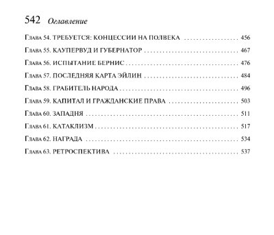 Каупервуд, выйдя из филадельфийской тюрьмы и совершив ряд удачных спекуляций во время биржевой паники, позволившей стать ему миллионером, решает продолжить деятельность в Чикаго. Роман описывает события в жизни главного героя после филадельфийского периода («Финансист») и предшествует заключительной части — роману «Стоик».