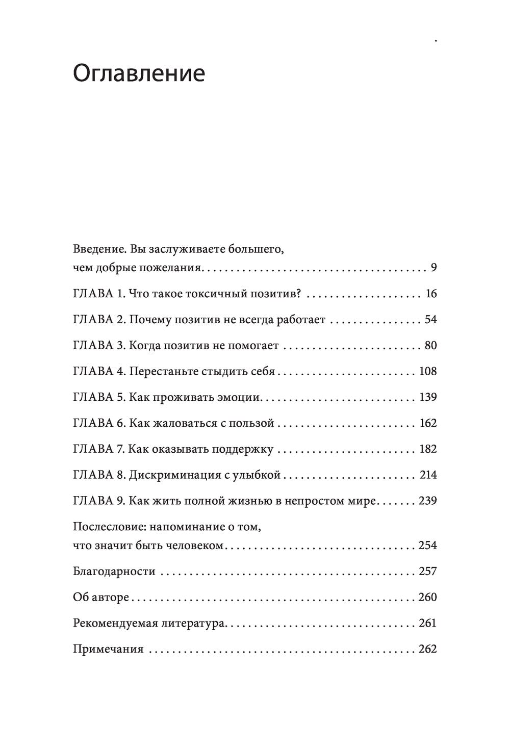 Мы регулярно слышим о том, что в любой ситуации необходимо искать светлую сторону и не обращать внимания на плохое. Из-за этого, сталкиваясь с трудностями, мы подавляем свои настоящие эмоции и не признаемся себе в истинных чувствах. Это стремление искоренить из жизни любые негативные проявления психолог Уитни Гудман называет токсичным позитивом. На примере из разных сфер жизни (здравоохранение, корпоративная среда, повседневное общение) она показывает, почему необходимо принимать свои чувства, делится стратегиями, которые позволят это сделать, а также дает советы о том, как корректно оказывать поддержку окружающим, подбирая слова, которые действительно помогут.