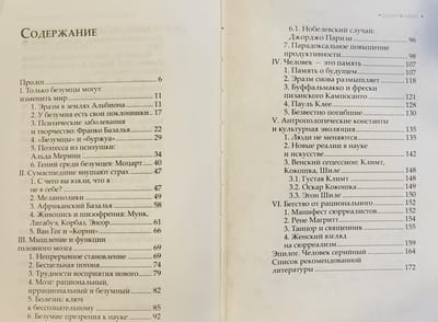 В этой книге автор сталкивает два мира: искусство и психологию. Какая леди преследовала Эразма Роттердамского? Так ли были безумны Ван Гог и Эдвард Мунк? Как страх и величие перед смертью и неизвестностью вдохновляли безумных гениев? Настолько ли безумцы безумны и как феномен «сумасшедшего творца» распространился по миру искусства? На самых ярких примерах из биографий Моцарта, Энсора, Магритта и многих других, автор аккуратно, но в тоже время настойчиво, проводит тонкую историческую нить безумия до нашего времени и дает ответы на эти и многие другие вопросы.