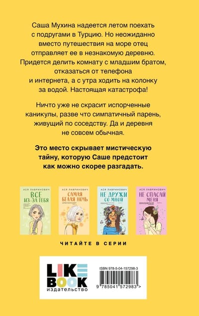 Ничто уже не скрасит испорченные каникулы, разве что симпатичный парень, живущий по соседству. Да и деревня не совсем обычная. Это место скрывает мистическую тайну, которую Саше предстоит как можно скорее разгадать.