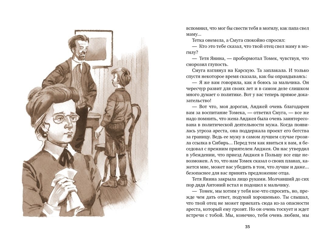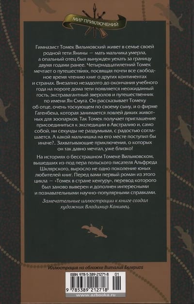 Гимназист Томек Вильмовский живет в семье своей родной тети Янины — мать мальчика умерла, а опальный отец был вынужден уехать за границу двумя годами ранее. Четырнадцатилетний Томек мечтает о путешествиях, посвящая почти все свободное время чтению книг о других континентах и странах. Внезапно незадолго до окончания учебного года на пороге дома тети появляется неожиданный гость, экстравагантный зверолов и путешественник по имени Ян Смуга. Он рассказывает Томеку об отце, очень тоскующем по своему сыну, и о фирме Гагенбека, которая занимается ловлей диких животных для зоопарков. Так Томек получает приглашение присоединиться к экспедиции в Австралию и, само собой, ни секунды не раздумывая, с радостью соглашается. А какой мальчишка на его месте поступил бы иначе?.. Захватывающие приключения, о которых он так давно мечтал, уже близко! На историях о бесстрашном Томеке Вильмовском, вышедших из-под пера польского писателя Альфреда Шклярского, выросло не одно поколение юных любителей книг. Перед вами первый роман из этого цикла — «Томек в стране кенгуру», перевод которого был заново выверен и дополнен интересными и познавательными научно-популярными справками. Замечательные иллюстрации к книге создал художник Владимир Канивец.
