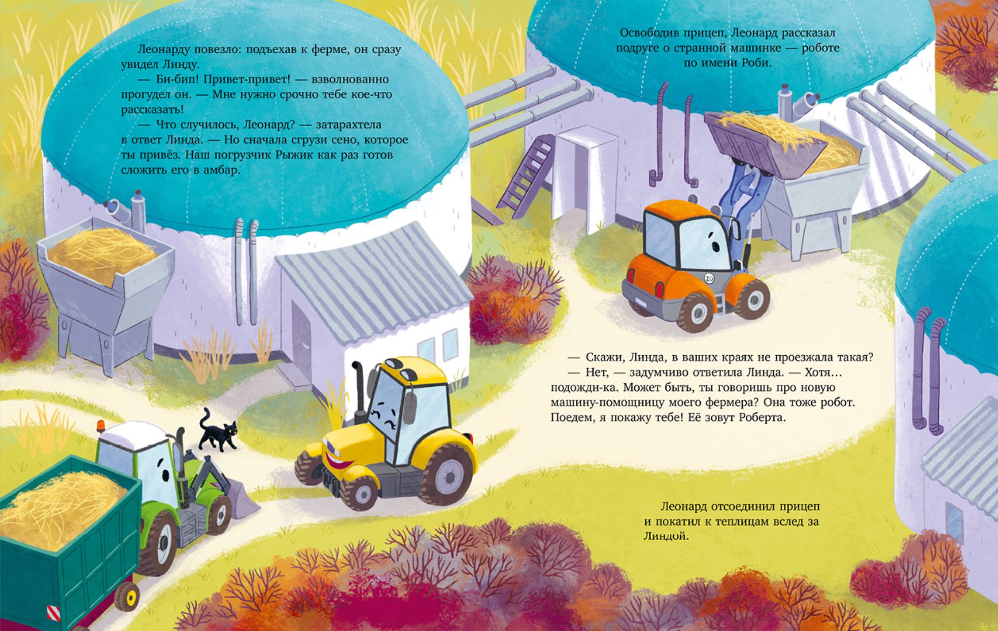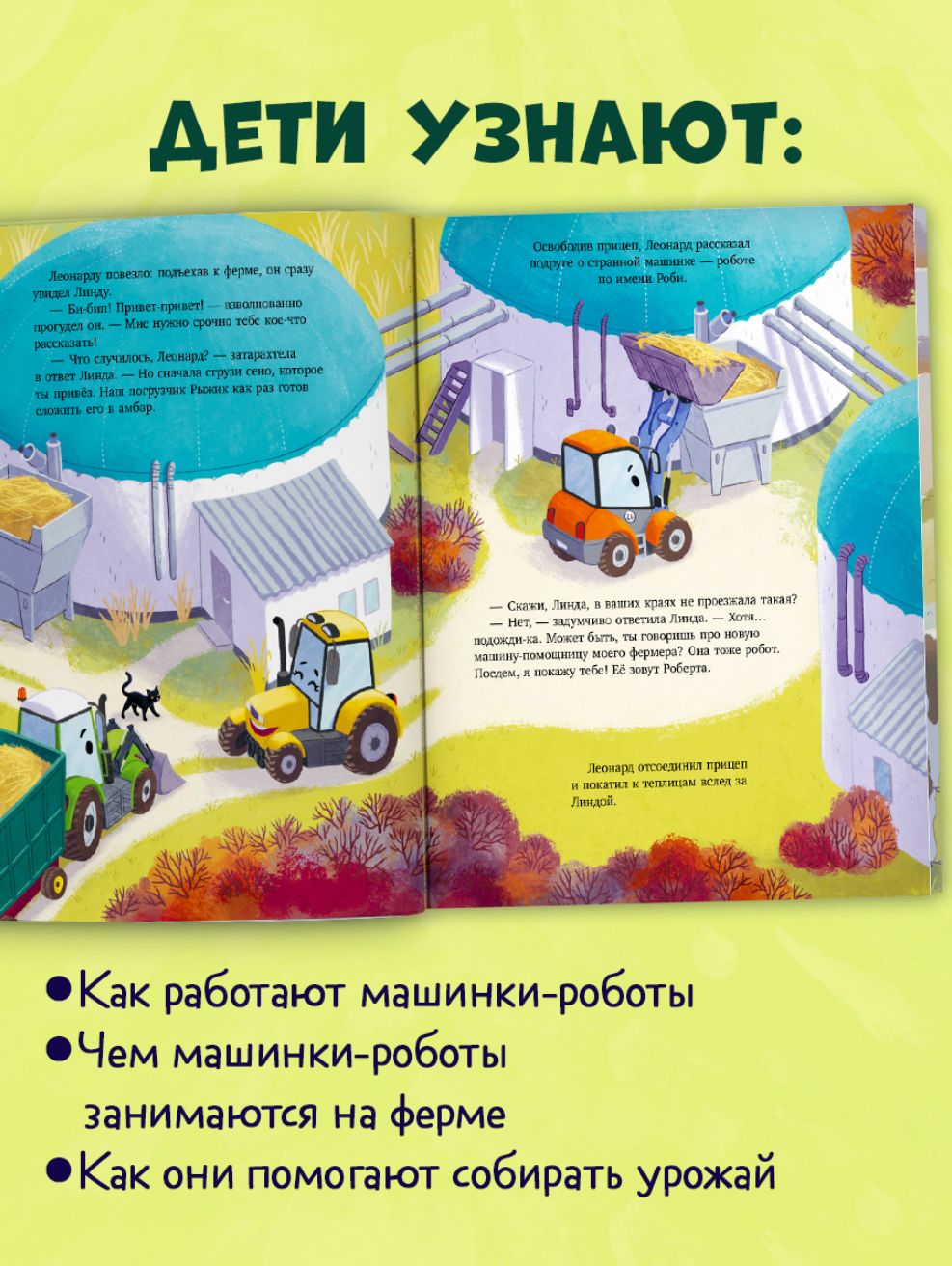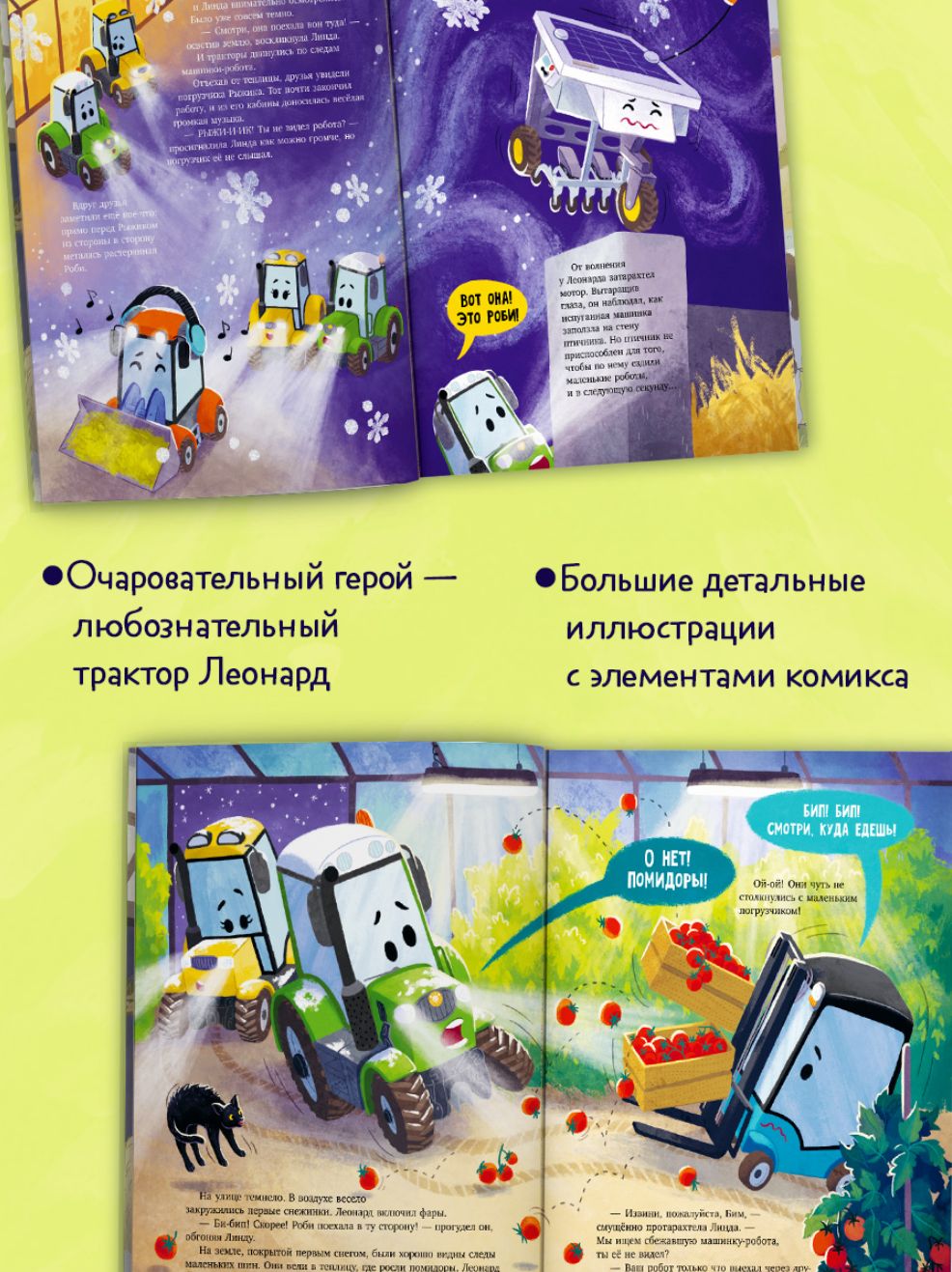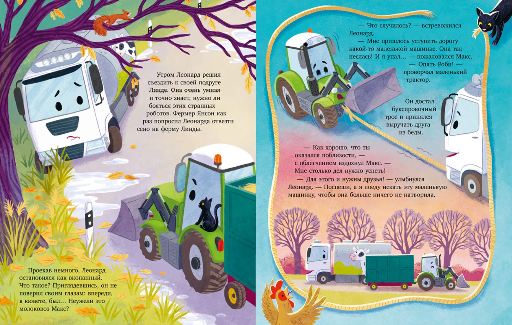 «Трактор Леонард и загадочный гость» — увлекательные приключения на ферме для всех любителей машин. Книжка с яркими сюжетными иллюстрациями познакомит малышей с работой машинок-роботов и отлично подойдет для первого чтения.