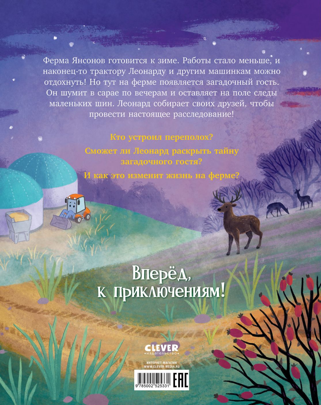 Ферма Янсонов готовится к зиме. Работы стало меньше, и наконец-то трактору Леонарду и другим машинкам можно отдохнуть! Но тут на ферме появляется загадочный гость. Он шумит в сарае по вечерам и оставляет на поле следы маленьких шин. Леонард собирает своих друзей, чтобы провести настоящее расследование!