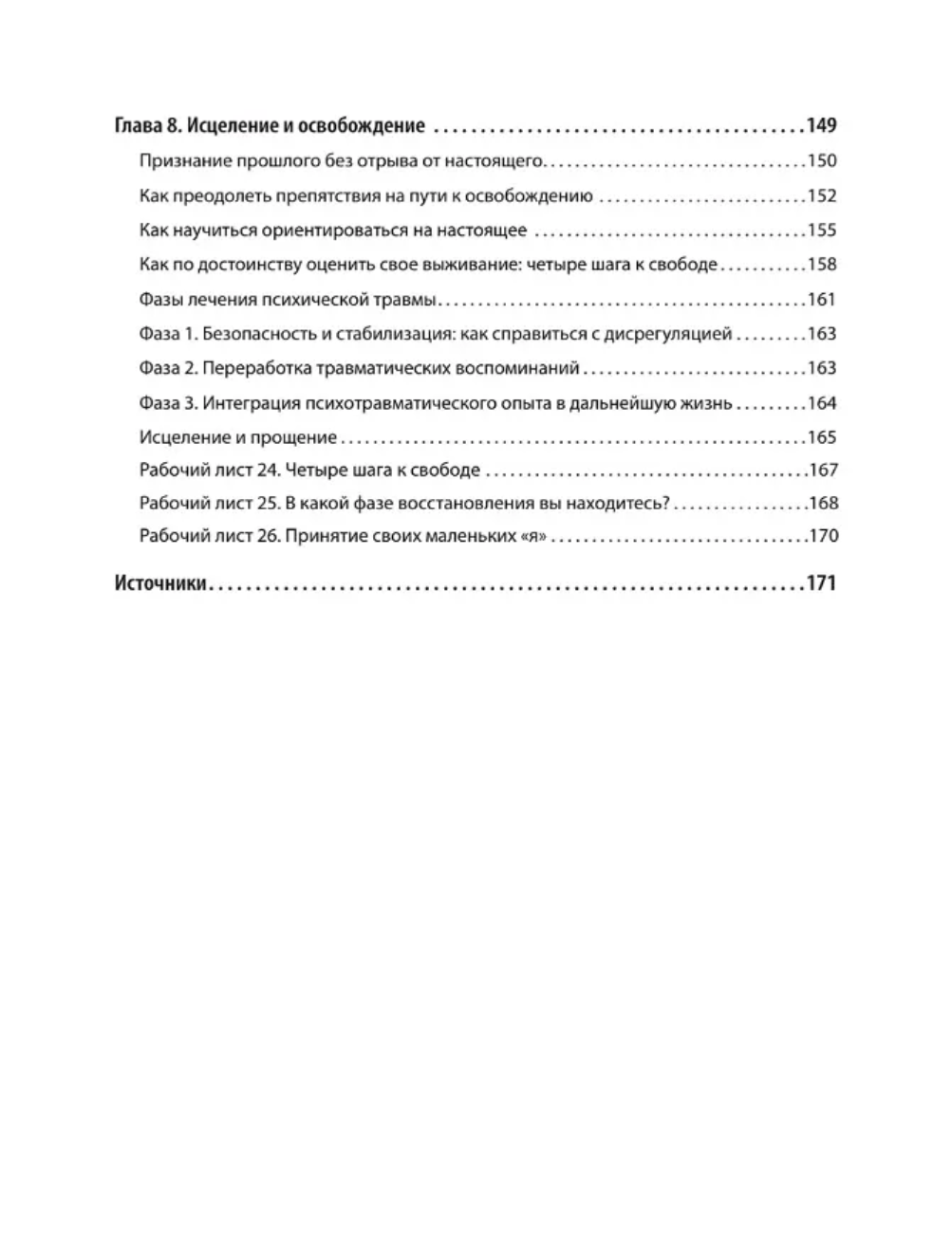 Травматический опыт оставляет «живое наследие», которое порой сохраняется в течение многих лет и десятилетий после окончания событий. Как справиться с этими последствиями? Доктор Янина Фишер, международный эксперт по психотравме, предлагает пошаговые стратегии, которые можно использовать самостоятельно или в сотрудничестве с терапевтом. В книгу включены диаграммы, которые дают представление о запутанных чувствах и физических реакциях переживших травму, и рабочие листы для отработки новых навыков.