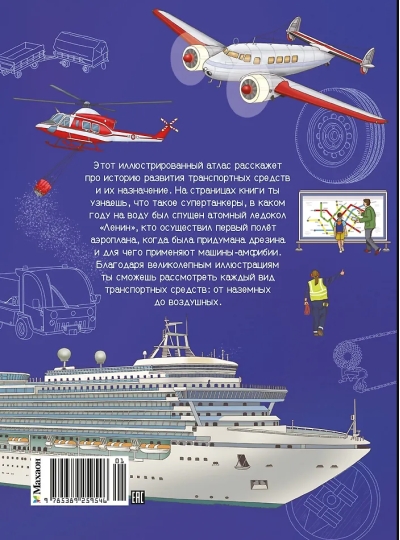 Этот иллюстрированный атлас расскажет про историю развития транспортных средств и их назначение. На страницах книги ты узнаешь, что такое супертанкеры, в каком году на воду был спущен атомный ледокол «Ленин», кто осуществил первый полёт аэроплана, когда была придумана дрезина и для чего применяют машины-амфибии. Благодаря великолепным иллюстрациям ты сможешь рассмотреть каждый вид транспортных средств: от наземных до воздушных.