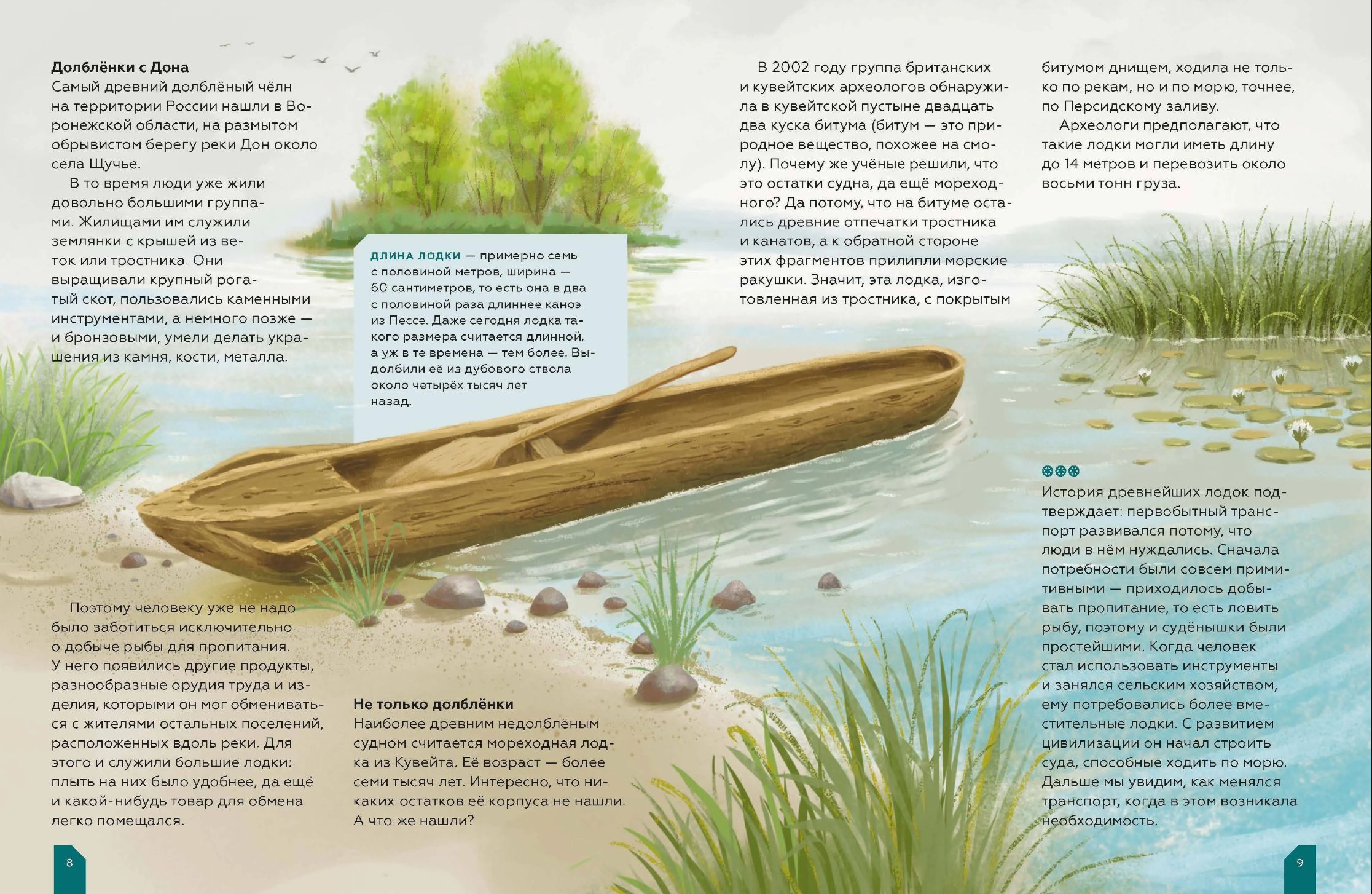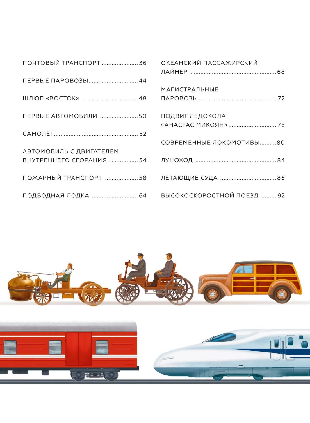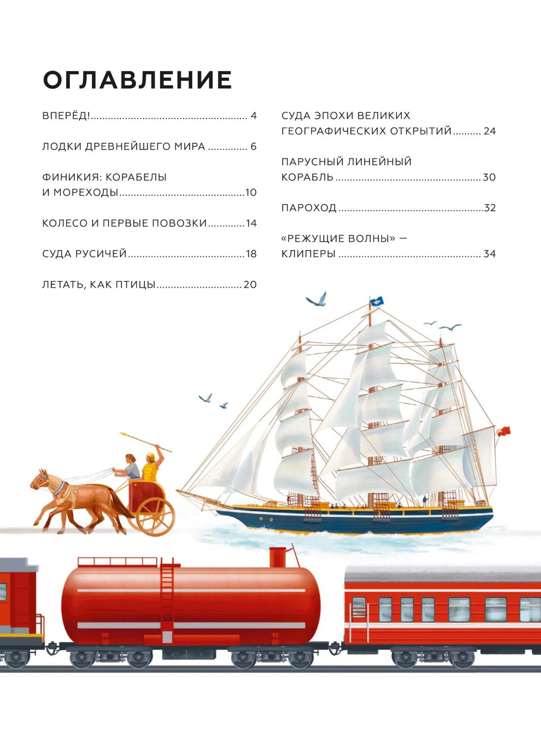 Эта книга — приглашение в большое путешествие по эпохам развития транспорта. Вы узнаете, как человек приручил пространство и скорость: от первых деревянных лодок до океанских лайнеров, от паровой машины до атомных подлодок.