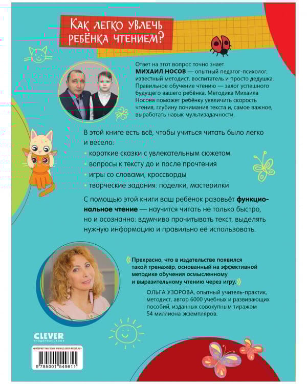 - короткие сказки с увлекательным сюжетом; - вопросы к тексту до и после прочтения; - игры со словами, кроссворды; - творческие задания: поделки, мастерилки. С помощью этой книги ваш ребёнок разовьёт функциональное чтение - научится читать не только быстро, но и осознанно: вдумчиво прочитывать текст, выделять нужную информацию и правильно её использовать.
