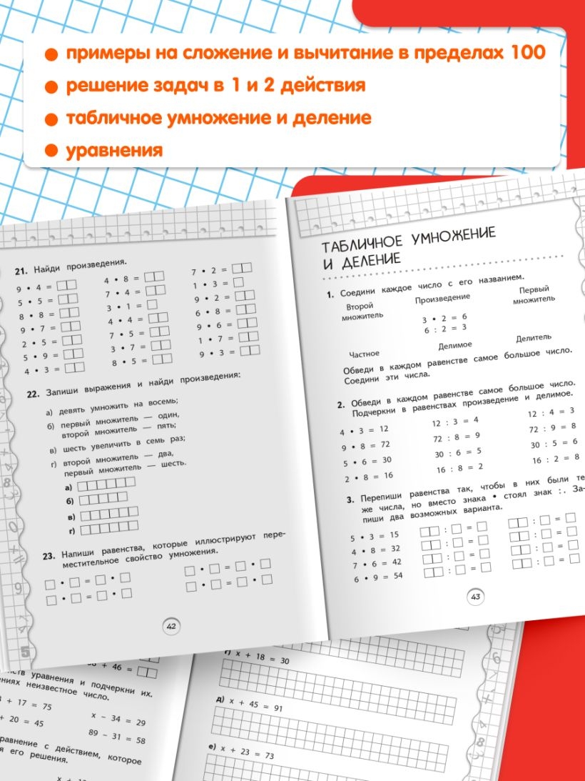 Пособие от издательства «Эксмо», соответствующее ФГОС, разработано специалистом с многолетним опытом работы и станет отличным помощником для учеников 2 класса в отработке умений и навыков, полученных на уроках математики. Решение большого количества примеров на сложение и вычитание в пределах 100, задач в одно и два действия, выражений на табличное умножение и деление, уравнений даст возможность школьникам в дальнейшем избежать вычислительных ошибок и довести навыки счёта до автоматизма. Занимаясь по книге, учащиеся научатся анализировать информацию и понимать учебную задачу, а также смогут закрепить пройденный материал, восполнить пробелы в знаниях, развить математические способности, повысить успеваемость по предмету.