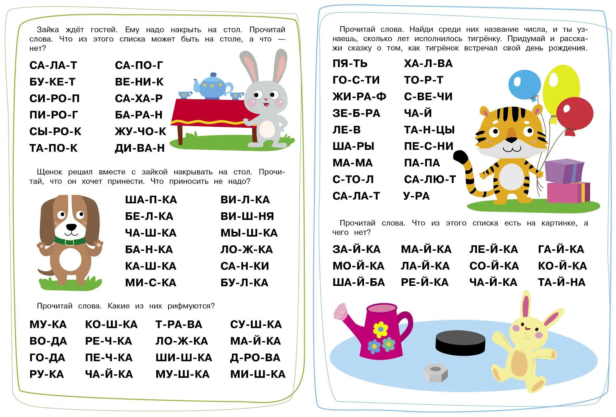 В этом тренажёре ребёнок научится читать самые разные слова, даже довольно длинные и сложные. Материал построен таким образом, что малыш шаг за шагом совершенствует технику чтения, осваивая всё более трудные слова. Занятия по тренажёру предполагают, что ребёнок не только должен прочитать слова, но и выполнить задание. Таким образом, у малыша появится мотивация для чтения. Он поймёт, для чего нужно уметь читать — чтобы узнавать что-то новое. Кроме того, выполняя задания, ребёнок научится осмысливать прочитанное. Таким образом, каждое задание не только тренирует навыки чтения малыша, но и делает процесс обучения комплексным, ставя перед ребёнком сразу несколько задач, а заодно превращает упражнения в весёлую игру.