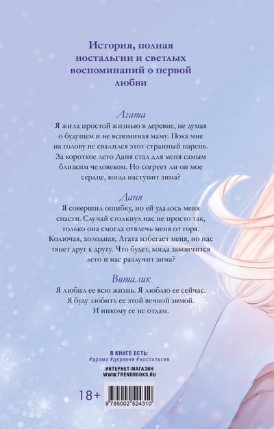 Агата. Я жила простой жизнью в деревне, не думая о будущем и не вспоминая маму. Пока мне на голову не свалился этот странный парень. За короткое лето Даня стал для меня самым близким человеком. Но согреет ли он мое сердце, когда наступит зима?