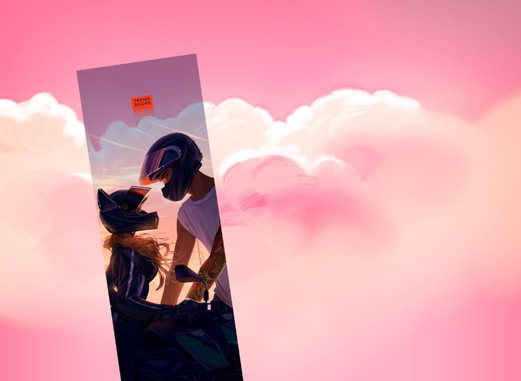 Прозрачная закладка «Барс и Полина на байках» по книге «По осколкам твоего сердца»