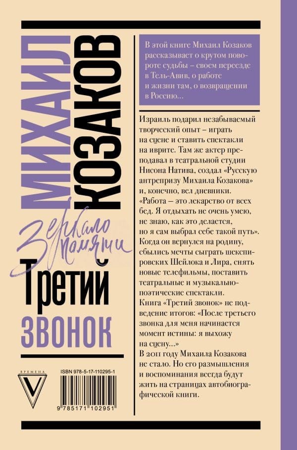 Израиль подарил незабываемый творческий опыт – играть на сцене и ставить спектакли на иврите. Там же актер преподавал в театральной студии Нисона Натива, создал "Русскую антрепризу Михаила Козакова" и, конечно, вел дневники. "Работа — это лекарство от всех бед. Я отдыхать не очень умею, не знаю, как это делается, но я сам выбрал себе такой путь". Когда он вернулся на родину сбылись мечты сыграть шекспировских Шейлока и Лира, снять новые телефильмы, поставить театральные и музыкально-поэтические спектакли. Книга "Третий звонок" не подведение итогов: "После третьего звонка для меня начинается момент истины: я выхожу на сцену…" В 2011 году Михаила Козакова не стало. Но его размышления и воспоминания всегда будут жить на страницах автобиографической книги.
