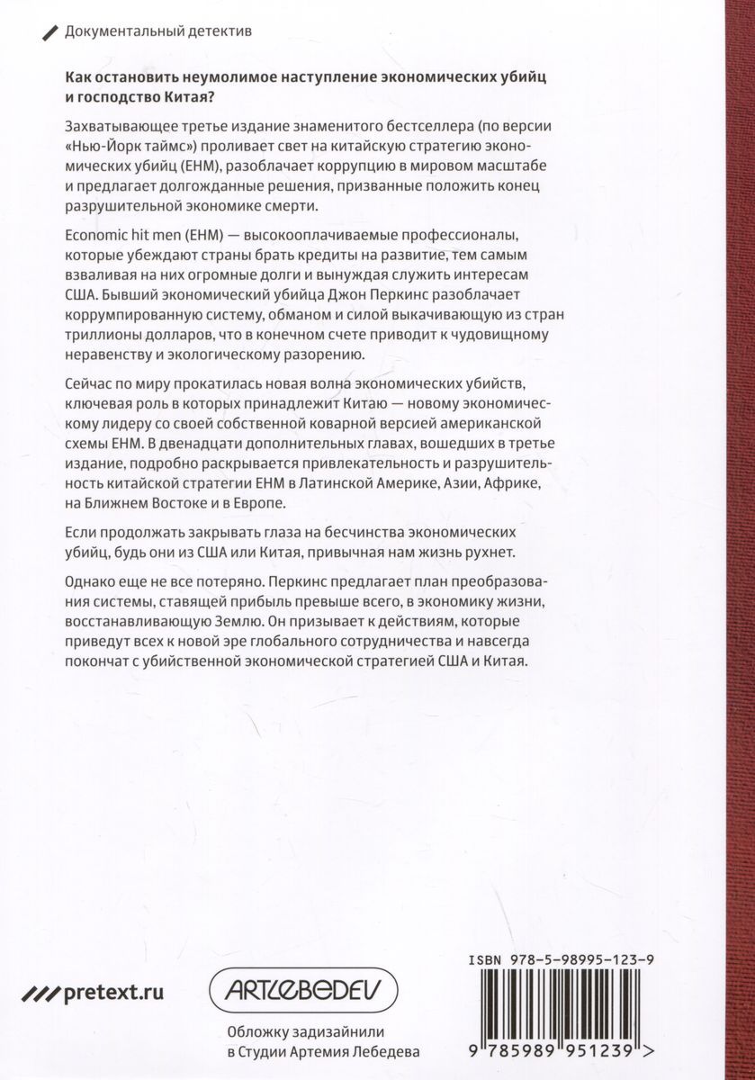 Потрясающее третье издание бестселлера по версии New York Times проливает свет на китайскую стратегию экономических убийц (ЕНМ), разоблачает коррупцию в международном масштабе и предлагает долгожданные решения, чтобы положить конец разрушительной экономике смерти. В этом шокирующем разоблачении бывший экономический убийца Джон Перкинс дает инсайдерский взгляд на коррумпированную систему, которая обманом и силой выкачивает из стран по всему миру триллионы долларов и в конечном итоге приводит к чудовищному неравенству и экологической катастрофе. ЕНМ - это высокооплачиваемые профессионалы, которые уговаривают страны брать кредиты на развитие, чтобы взвалить на них огромные долги и вынудить их служить интересам США. Сейчас по миру прокатилась новая волна экономических убийц, и на пике разрушений находится Китай, новая доминирующая экономическая держава со своей собственной коварной версией американской схемы ЕНМ. В двенадцати новых обличающих главах подробно рассказывается о привлекательности, но и разрушительном воздействии на природу китайской стратегии ЕНМ в Латинской Америке, Азии, Африке, на Ближнем Востоке и в Европе. Если закрывать глаза на бесчинства экономических убийц, то - независимо от того, кто стоит во главе, США или Китай, - они уничтожат жизнь на нашей планете. Однако еще не все потеряно. Перкинс предлагает план преобразования этой системы, ставящей прибыль превыше всего, в экономику жизни, восстанавливающую Землю. Он вдохновляет читателей на действия, ведущие к новой эре глобального сотрудничества, которая навсегда покончит со стратегией ЕНМ США и Китая.