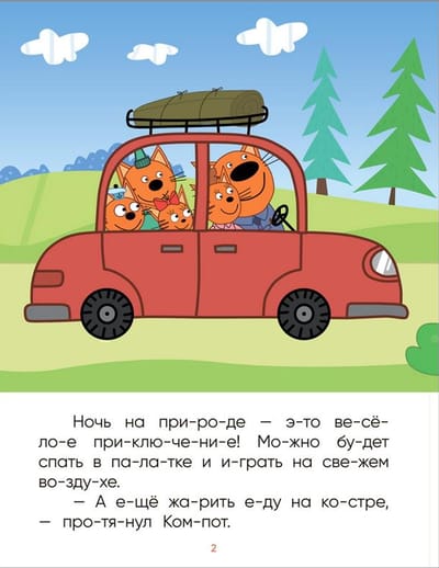 Что делать, если ребенок учится читать, а все сказки и стихи уже зачитаны до дыр? На помощь придет книга «На природе» серия «Три кота. Читаю по слогам» — история по мотивам любимого мультфильма. Слова, разделенные на фонетические слоги, крупный шрифт, понятные тексты и яркие иллюстрации — все в этой книге предусмотрено для того, чтобы читать по слогам ребенку было легко и интересно. Удобный формат книги позволит наслаждаться чтением не только дома, но и на прогулке, в пути или в очереди. Из книги «Ночь на природе» ребенок узнает, как котята научились не бояться лесных чудищ и прекрасно провели время с родителями.