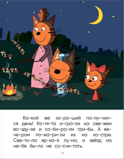 Три кота. Читаю по слогам. Ночь на природе