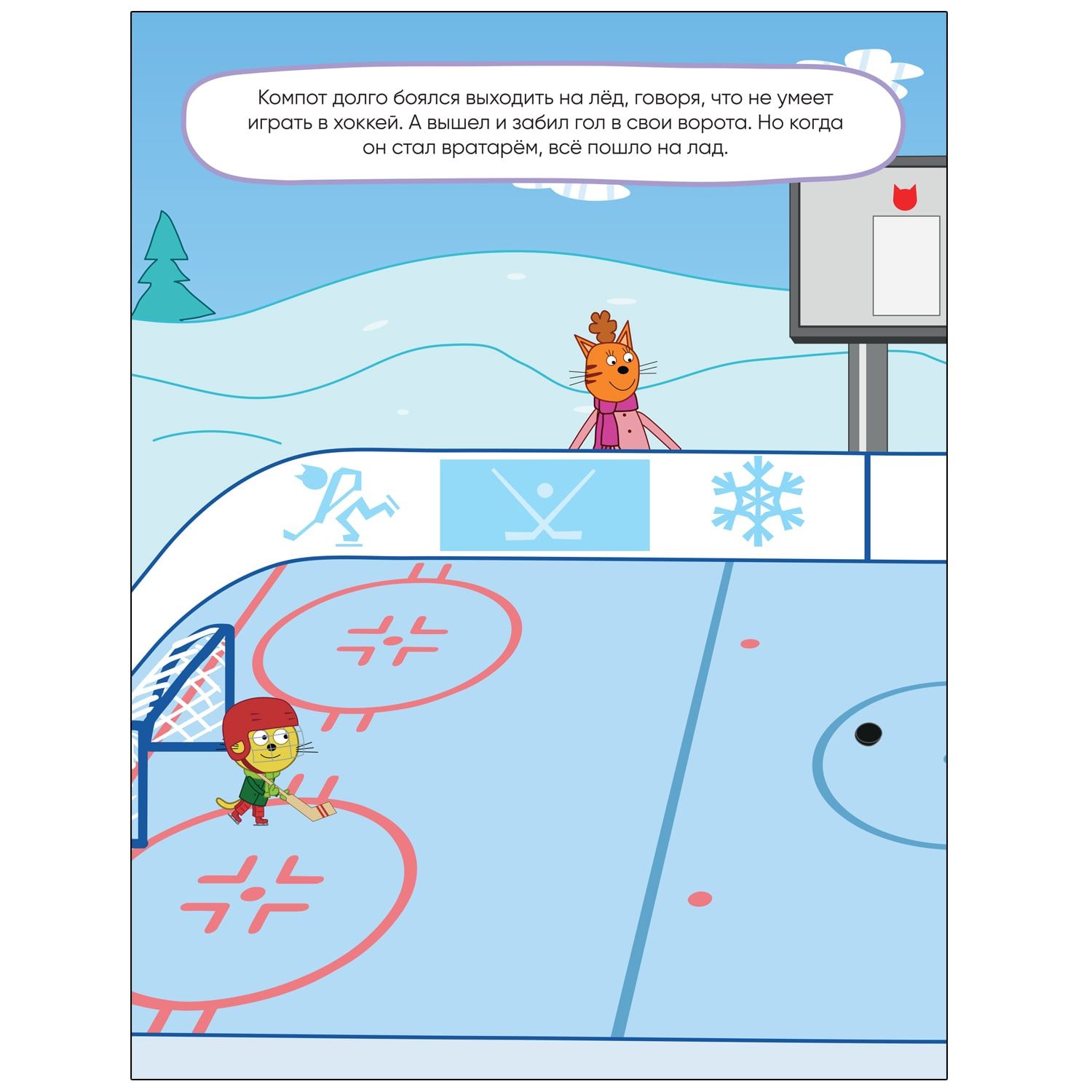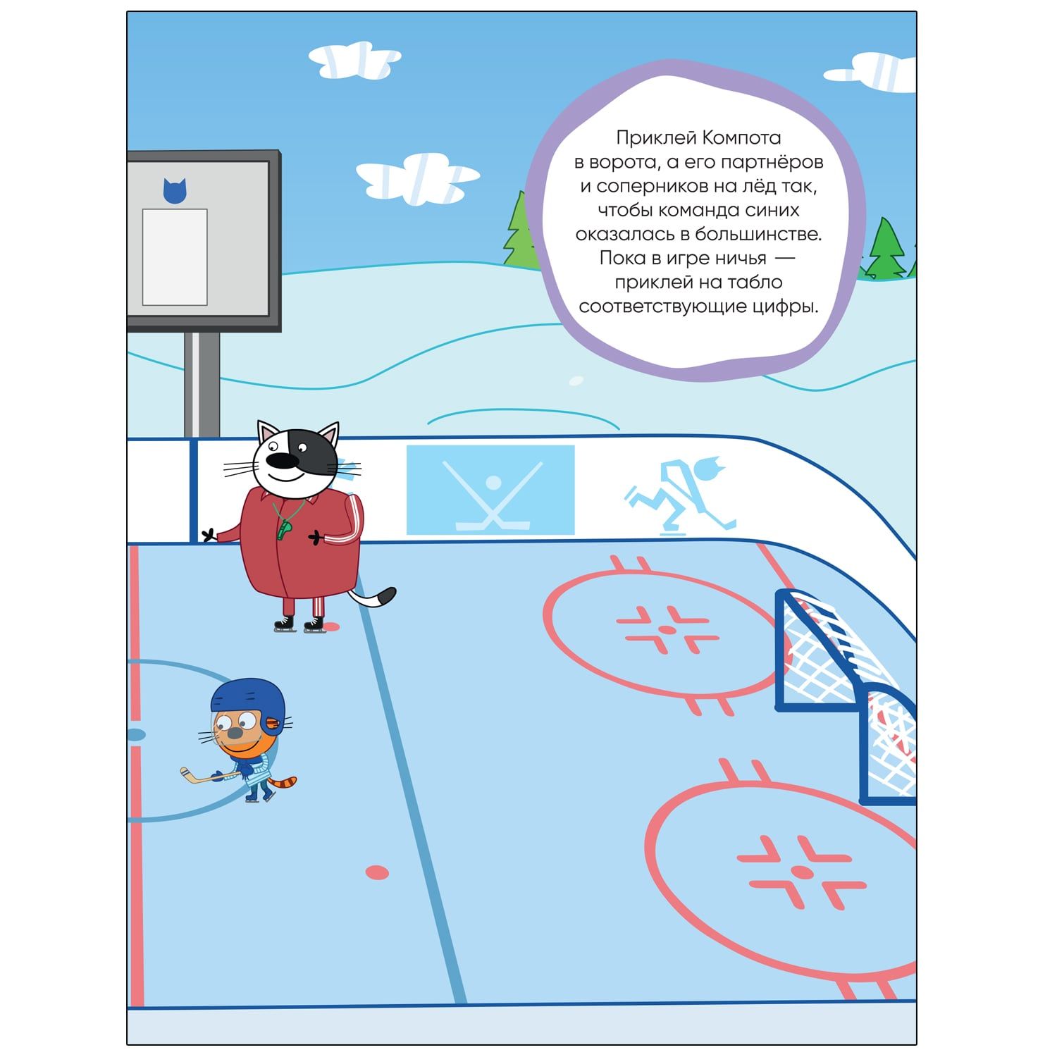 Миу-миу-миу! А ваш ребенок любит мультсериал «Три кота»? Тогда ему обязательно понравится эта книжка с наклейками, рассказывающая о разных видах спорта. Коржик, Карамелька и Компот покажут, какими видами спорта они занимаются и какие только мечтают освоить. Ребенок сможет присоединиться к котятам за шахматной доской или на хоккейной площадке, решая задания, тренируясь в счете и приклеивая наклейки на страницы книги. А клеить наклейки — занятие не только очень захватывающее, но и полезное. Оно способствует развитию мелкой моторики, логики, внимания и мышления.