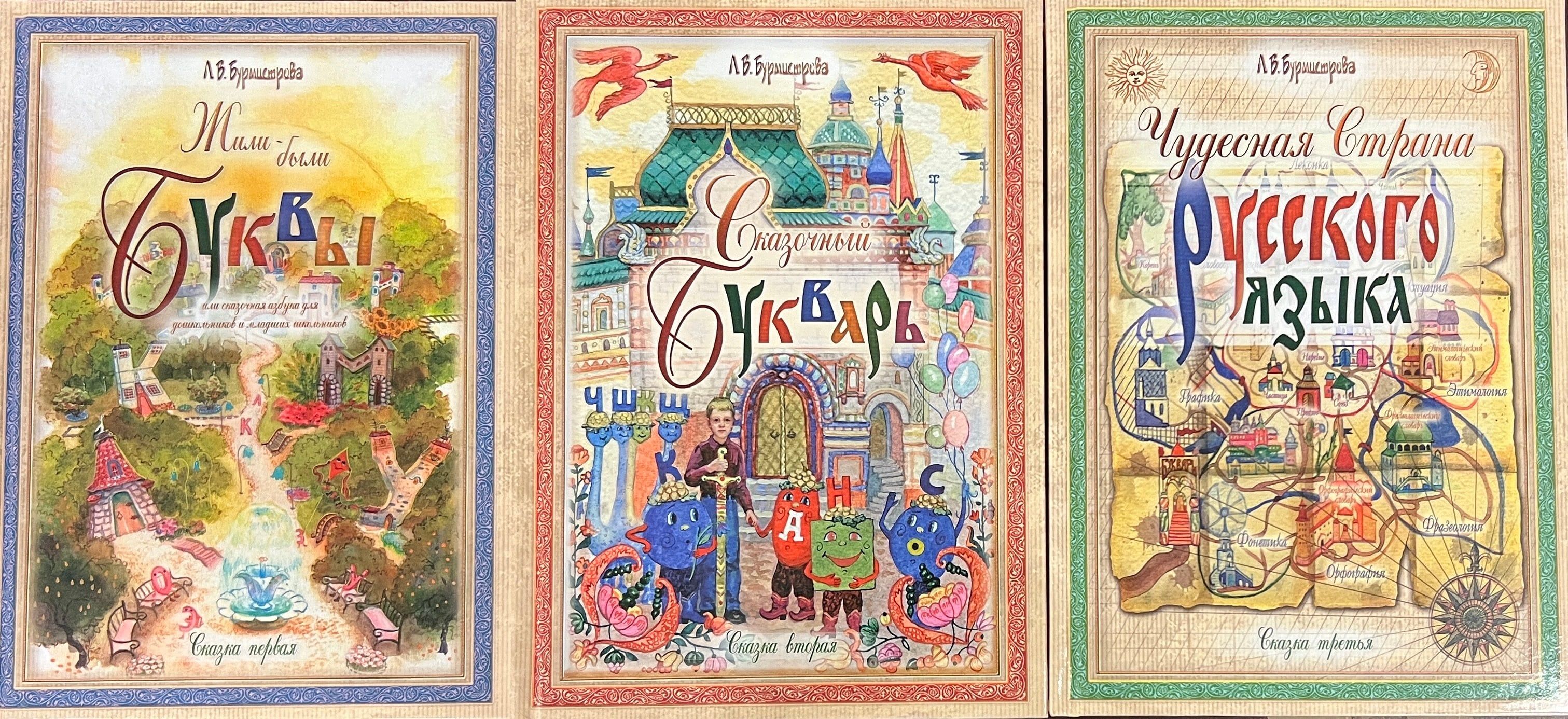 Подарочное издание — комплект из трех книг «Три сказки о русском языке» — является детским учебным пособием. Его создатель — монахиня Марина (Бурмистрова Лариса Валентиновна) предлагает совершенно новую и увлекательную форму знакомства дошкольников и младших школьников с такими понятиями, как звук, буква, слог, слово, предложение, части речи и т. д.
