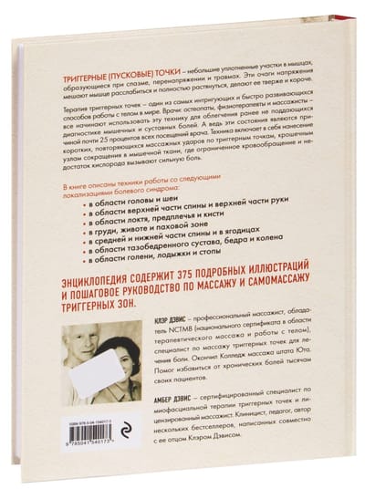 Уникальная методика лечения боли при помощи работы с триггерными точками уже давно используется специалистами. Техника включает нанесение коротких повторяющихся массажных движений на триггерные точки — крошечные узлы сокращения в мышечной ткани, где ограниченное кровообращение и недостаток кислорода вызывают боль. Авторский метод работы с хронической болью произвел огромное впечатление как на специалистов здравоохранения, так и на общественность, став в одночасье классикой в области обезболивания. С момента выхода первого издания в 2001 году было продано более 220 000 экземпляров книги. Второе издание представляет собой полное обновление и включает новую главу, специально предназначенную для профессионалов в области массажа, а также главу о методиках систематического расслабления мышц, которые могут усилить терапевтическую силу работы с триггерными точками.