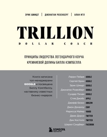 Книга «Trillion Dollar Coach. Принципы лидерства легендарного коуча Кремниевой долины Билла Кэмпбелла», написанная Эриком Шмидтом, Джонатаном Розенбергом и Аланом Иглом, включает в себя уникальные принципы решения сверхсложных задач, связанных с созданием нетривиальной команды и достижением высоких результатов. Она вобрала в себя самые ценные советы, интересные рекомендации и нестандартные пути решения возникающих препятствий. Данная книга станет не просто полезным гидом, но и прекрасным украшением книжной полки благодаря своей стильной обложке.