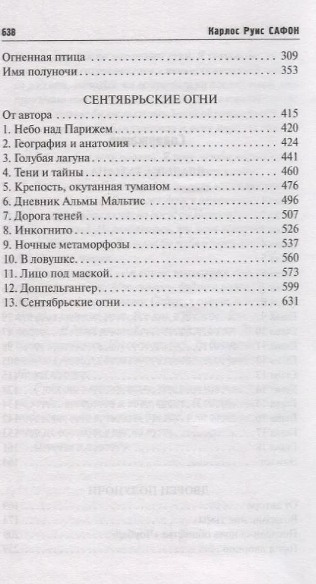В сборник включены романы Карлоса Руиса Сафона «Владыка Тумана», «Дворец полуночи» и «Сентябрьские огни».