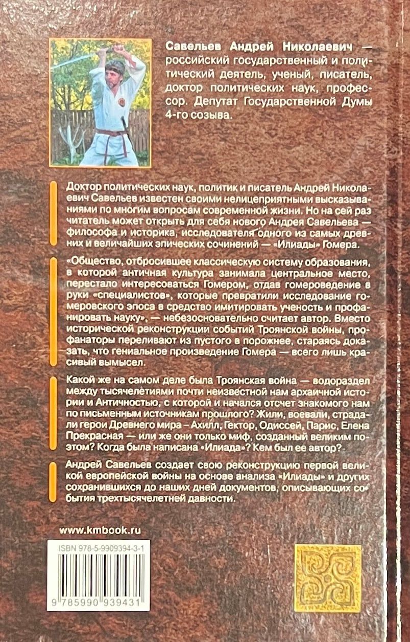«Общество, отбросившее классическую систему образования, в которой античная культура занимала центральное место, перестало интересоваться Гомером, отдав гомероведение в руки „специалистов“, которые превратили исследование гомеровского эпоса в средство имитировать ученость и профанировать науку», — небезосновательно считает автор. Вместо исторической реконструкции событий Троянской войны, профанаторы переливают из пустого в порожнее, стараясь доказать, что гениальное произведение Гомера — всего лишь красивый вымысел. Какой же на самом деле была Троянская война — водораздел между тысячелетиями почти неизвестной нам архаичной истории и Античностью, с которой и начался отсчет знакомого нам по письменным источникам прошлого? Жили, воевали, страдали герои Древнего мира — Ахилл, Гектор, Одиссей, Парис, Елена Прекрасная — или же они только миф, созданный великим поэтом? Когда была написана «Илиада»? Кем был ее автор? Андрей Савельев создает свою реконструкцию первой великой европейской войны на основе анализа «Илиады» и других сохранившихся до наших дней документов, описывающих события трехтысячелетней давности.