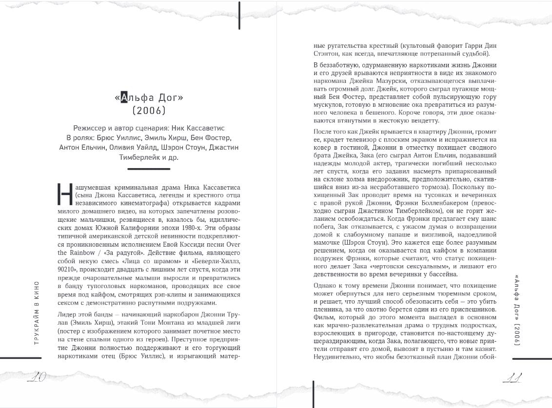 Фраза «Основано на реальных событиях» в начале фильма моментально делает любой сюжет стократ интереснее. Ведь жизнь — лучший сценарист. То, что порой происходит в реальности, куда более шокирующее и невероятное, чем способен придумать даже самый искусный драматург. И эта книга как раз о тех фильмах, создатели которых вдохновлялись реальными преступлениями. Громкие убийства, невообразимая жестокость, извращенные пытки, дерзкие ограбления, кошки-мышки с детективами и леденящий душу страх — излюбленный набор любого поклонника тру-крайма.