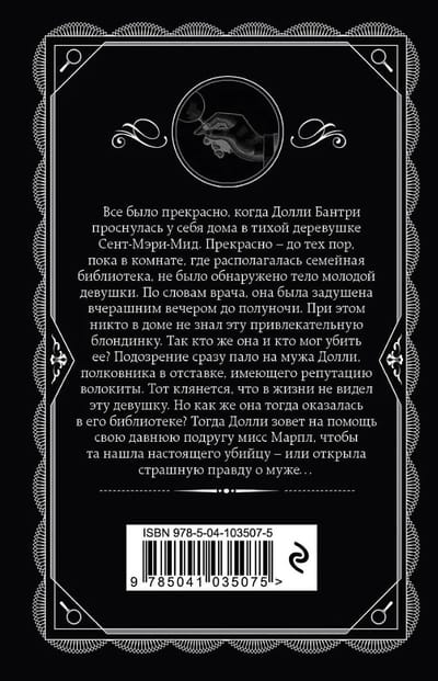 Все было прекрасно, когда Долли Бантри проснулась у себя дома в тихой деревушке Сент-Мэри-Мид. Прекрасно – до тех пор, пока в комнате, где располагалась семейная библиотека, не было обнаружено тело молодой девушки. По словам врача, она была задушена вчерашним вечером до полуночи. При этом никто в доме не знал эту привлекательную блондинку. Так кто же она, и кто мог убить ее? Подозрение сразу пало на мужа Долли, полковника в отставке, имеющего репутацию волокиты. Тот клянется, что в жизни не видел эту девушку. Но как же она тогда оказалась в его библиотеке? Тогда Долли зовет на помощь свою давнюю подругу мисс Марпл, чтобы та нашла настоящего убийцу – или открыла страшную правду о муже…