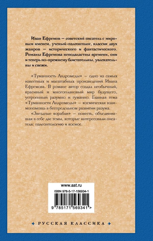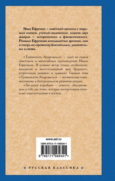 «Туманность Андромеды» — одно из самых известных и масштабных произведений Ивана Ефремова. В романе автор создал необычный, красивый и многоплановый мир будущего, устроенный разумно и гуманно. Главная тема «Туманности Андромеды» — космическая взаимопомощь в беспредельном развитии разума.