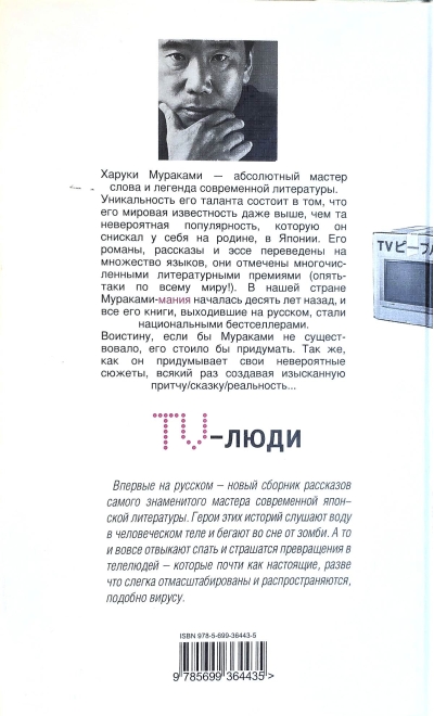 Впервые на русском - новый сборник рассказов самого знаменитого мастера современной японской литературы. Герои этих историй слушают воду в человеческом теле и бегают во сне от зомби. А то и вовсе отвыкают спать и страшатся превращения в телелюдей - которые почти как настоящие, разве что слегка отмасштабированы и распространяются подобно вирусу.