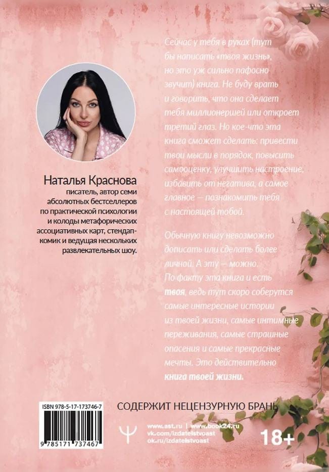 Обычную книгу невозможно дописать или сделать более личной. А эту — можно. По факту эта книга и есть твоя, ведь тут скоро соберутся самые интересные истории из твоей жизни, самые интимные переживания, самые страшные опасения и самые прекрасные мечты. Это действительно книга твоей жизни.