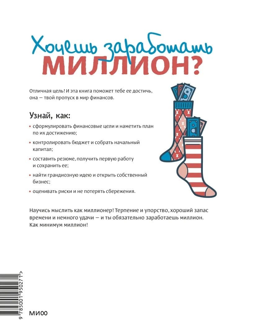 Первая книга по личным финансам и накоплению, разумным тратам и инвестированию для ребенка. Она внушает уверенность в своих силах и в том, что финансовое благополучие зависит от принятых решений. Написанная простым ироничным языком, книга поможет ребенку вырасти финансово независимым и подкованным, принимать правильные финансовые решения и ощущать ответственность за свою жизнь. Экономические реалии объясняются с помощью красочных иллюстраций. Для кого эта книга: - для детей от 8 лет, которых интересует тема финансов; - для родителей, которые хотят вырастить своего ребенка финансово независимым.