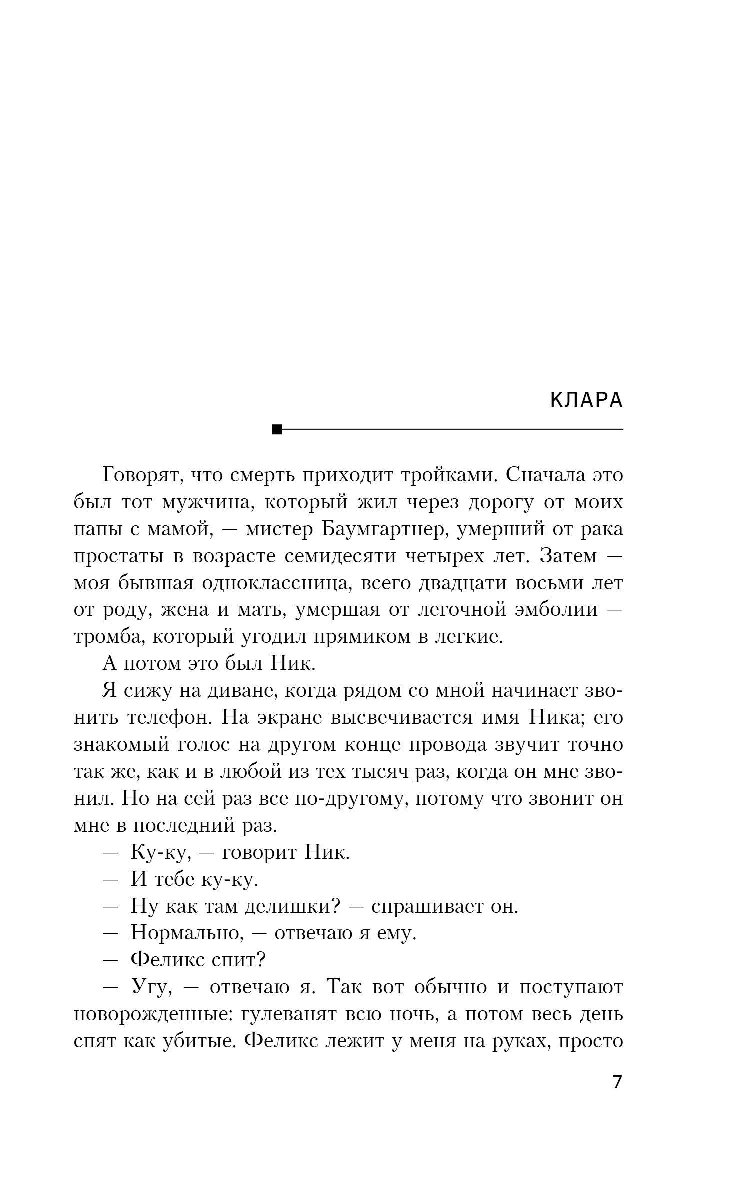 Раздираемая горем и навязчивой мыслью, что гибель Ника — не случайность, Клара отчаянно ищет правду. Кто мог желать смерти ее мужу? И, главное, почему? Ради ответов она готова на все. Но очень скоро узнает, что правда — лишь начало этой запутанной истории, полной тайн и обмана…