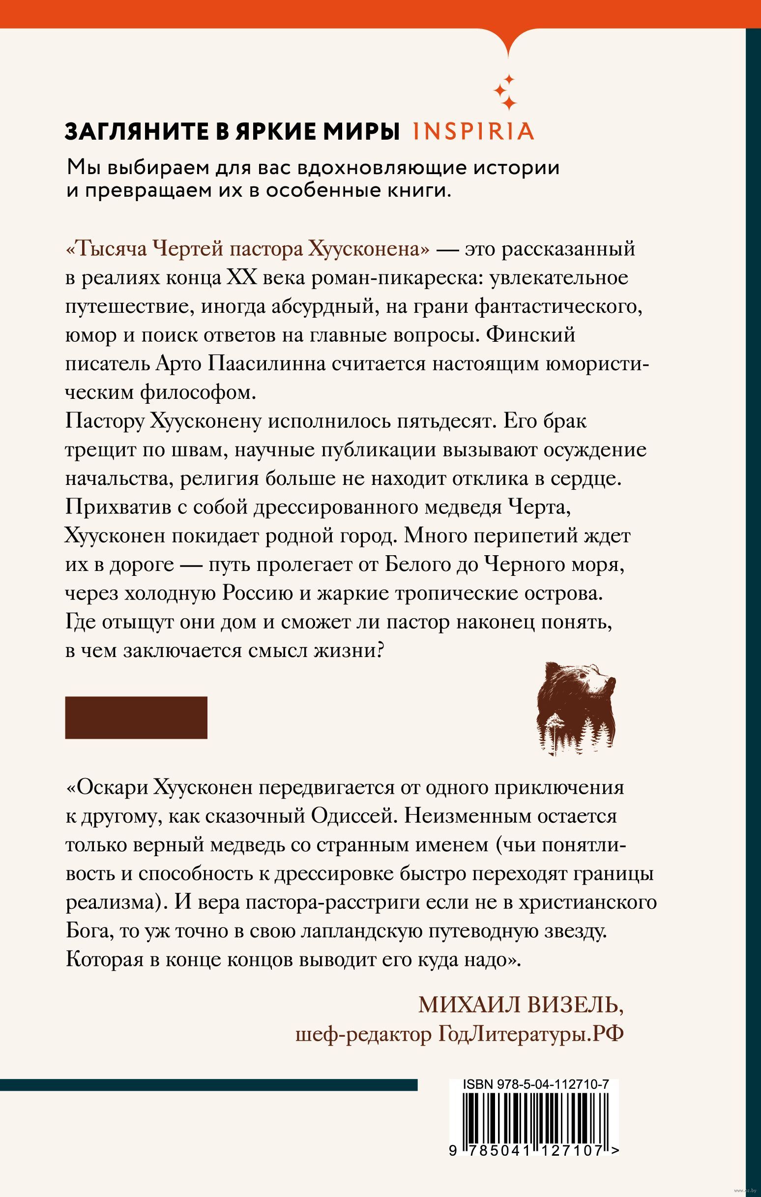 "Тысяча Чертей пастора Хуусконена" — это рассказанный в реалиях конца XX века роман-пикареска: увлекательное путешествие, иногда абсурдный, на грани фантастического, юмор и поиск ответов на главные вопросы. Финский писатель Арто Паасилинна считается настоящим юмористическим философом.