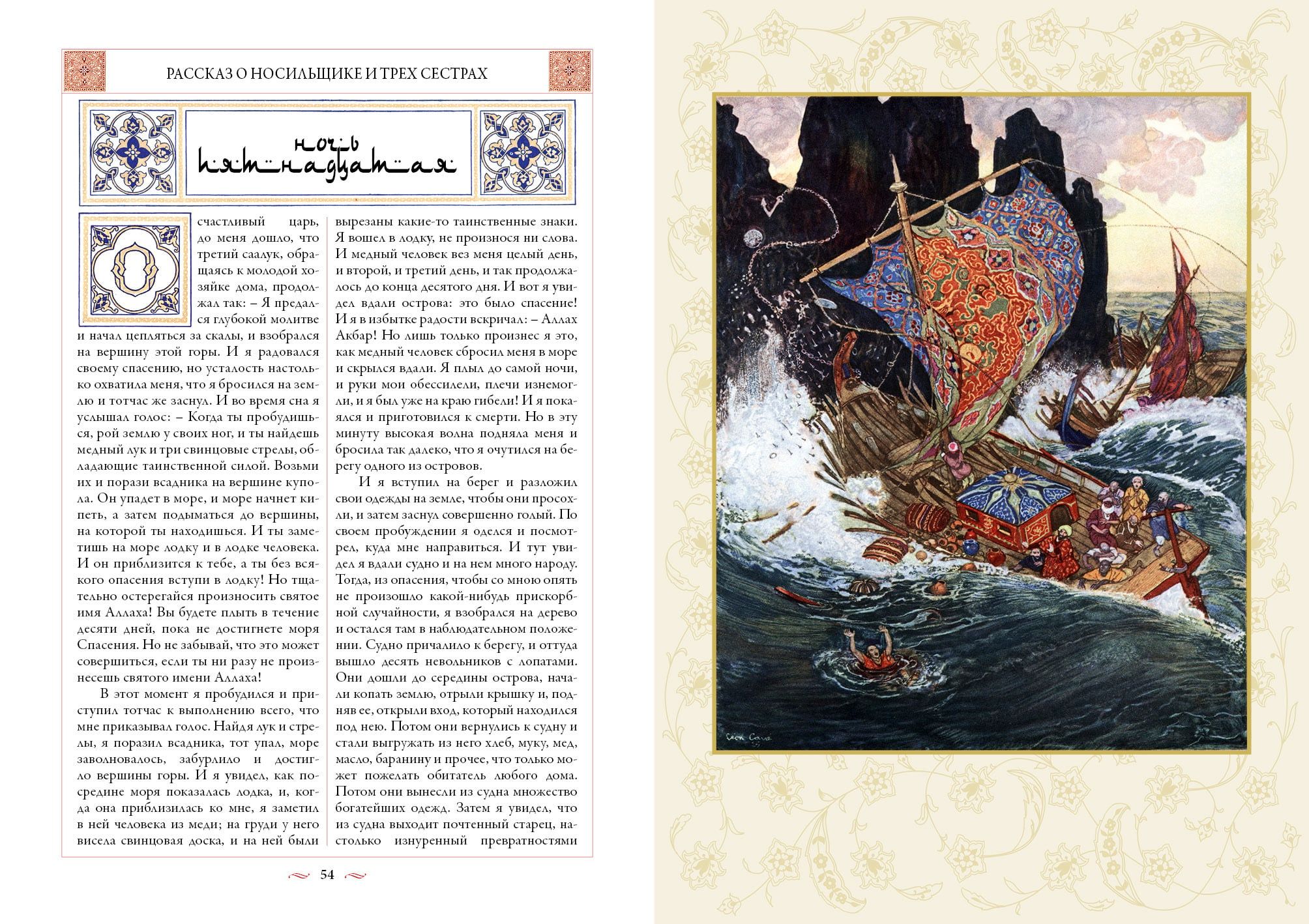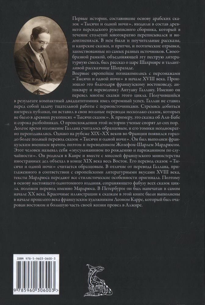 Перевод этой книги сделан с французской версии сказок «1001 ночи» под редакцией Ж.-Ш. Мардрюса, отличающейся от других изданий наиболее пикантным изложением. Специально к изданию Мардрюса художник Леон Карре создал иллюстрации, полные восточной неги и чувственности.