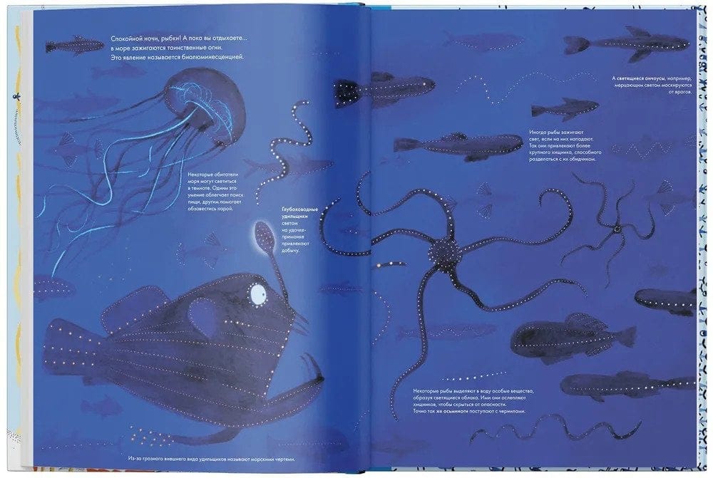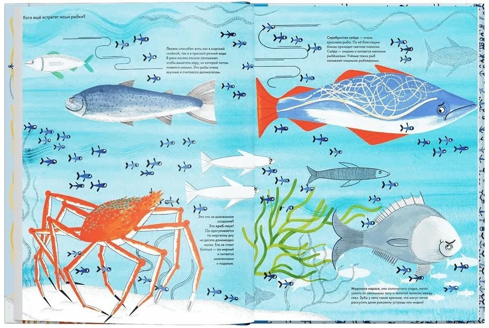 Художница и автор книги Иоанна Жезак собрала познавательные факты о рыбках и их соседях по мировому океану и превратила в увлекательное путешествие. В ее иллюстрациях у каждого краба и морской звезды - свой характер, а у подводного ландшафта - фантастическая красота и таинственность.