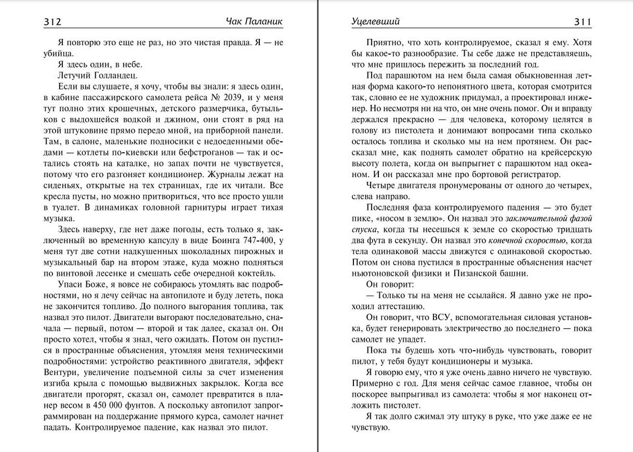 Единственный уцелевший из секты фанатиков-самоубийц. Пророк. Суперзвезда. Новый мессия, захлебнувшийся собственной славой — и проклинающий день, когда не умер. Он ведет в никуда пустой «Боинг-747» — и рассказывает «черному ящику» свою историю.