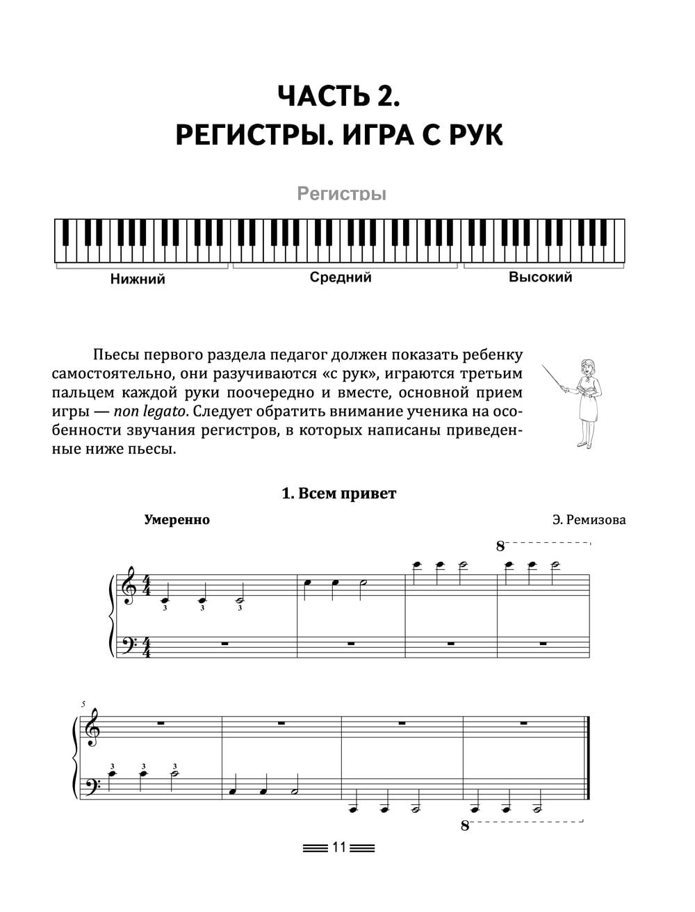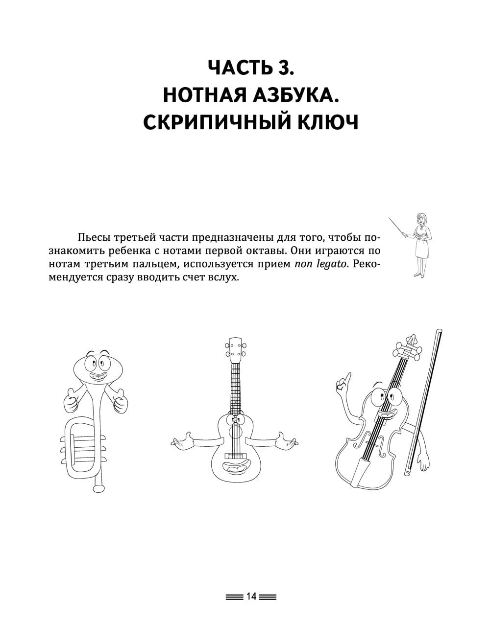 Это пособие поможет всем желающим сделать первые шаги в изучении музыки. Материал построен по схеме от простого к сложному, что позволяет постепенно осваивать музыкальную грамоту. Первая часть издания представляет собой раздел с информацией по темам, каждая тема сопровождается музыкальными произведениями для практических занятий. Во второй части более сложные произведения собраны в хрестоматию для усвоения теоретического материала на практике. «Изюминкой» этого издания является наличие части, полностью состоящей из пьес в «пятиклавишных позициях пальцев», где на протяжении всего музыкального произведения под каждым из пальцев «закрепляется» определенная клавиша. Это издание подойдет не только детям, но и взрослым желающим начать заниматься музыкой!