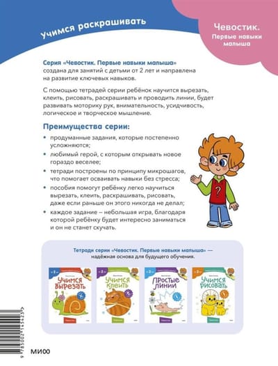 Благодаря тетради «Учимся раскрашивать» ребёнок запомнит цвета, научится обращаться с карандашом или фломастером, раскрашивать картинки аккуратно.