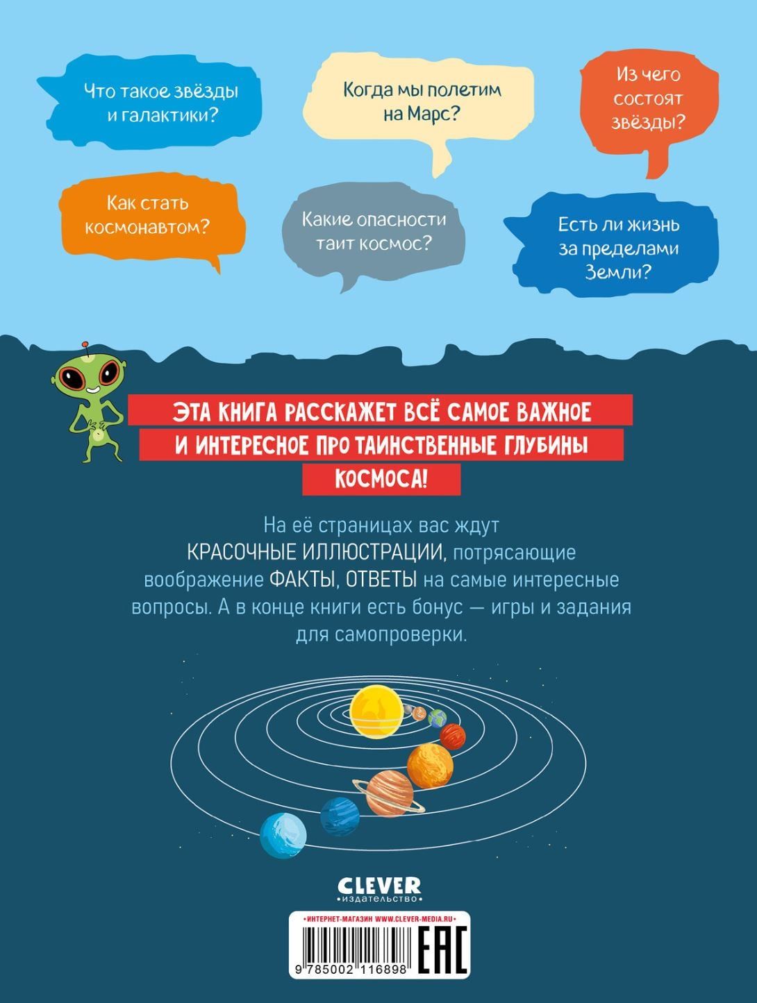 Эта книга расскажет всё самое важное и интересное про таинственные глубины космоса. На её страницах вас ждут красочные иллюстрации, потрясающие воображение факты, ответы на самые интересные вопросы. А в конце книги есть бонус — игры и задания для самопроверки.