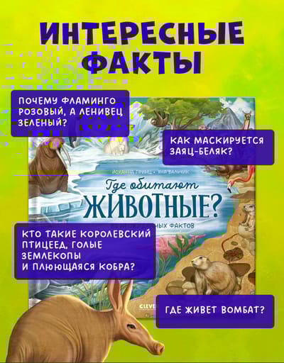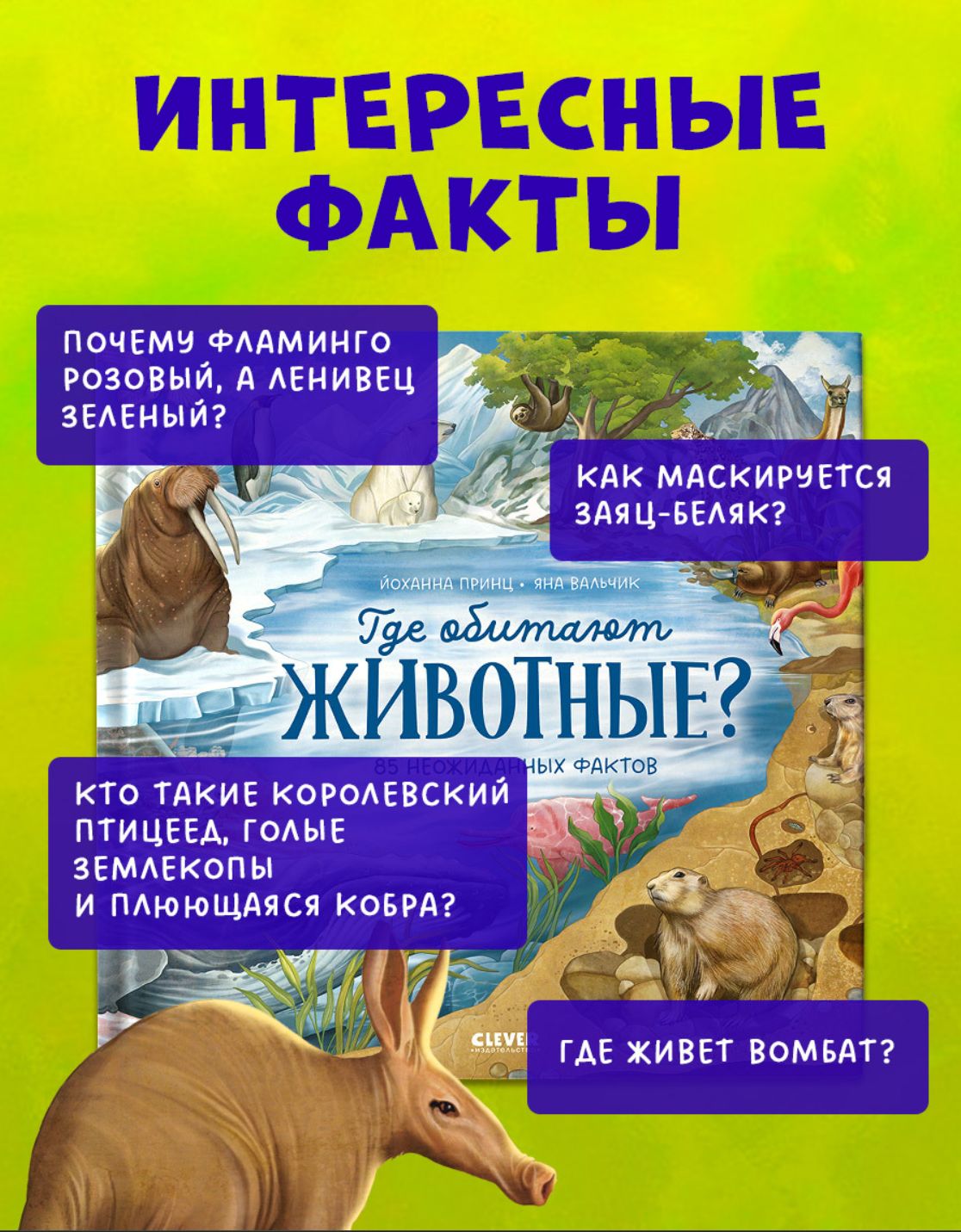 «Где обитают животные?» — книга-путеводитель, которая ответит на самые неожиданные вопросы об обитателях нашей планеты. Почему фламинго розовый, а ленивец зеленый? Как маскируется заяц-беляк и где живет вомбат?