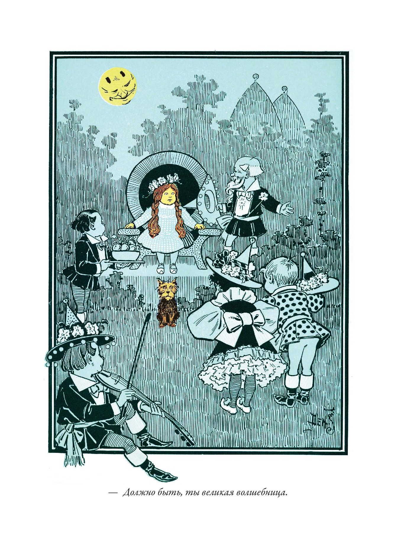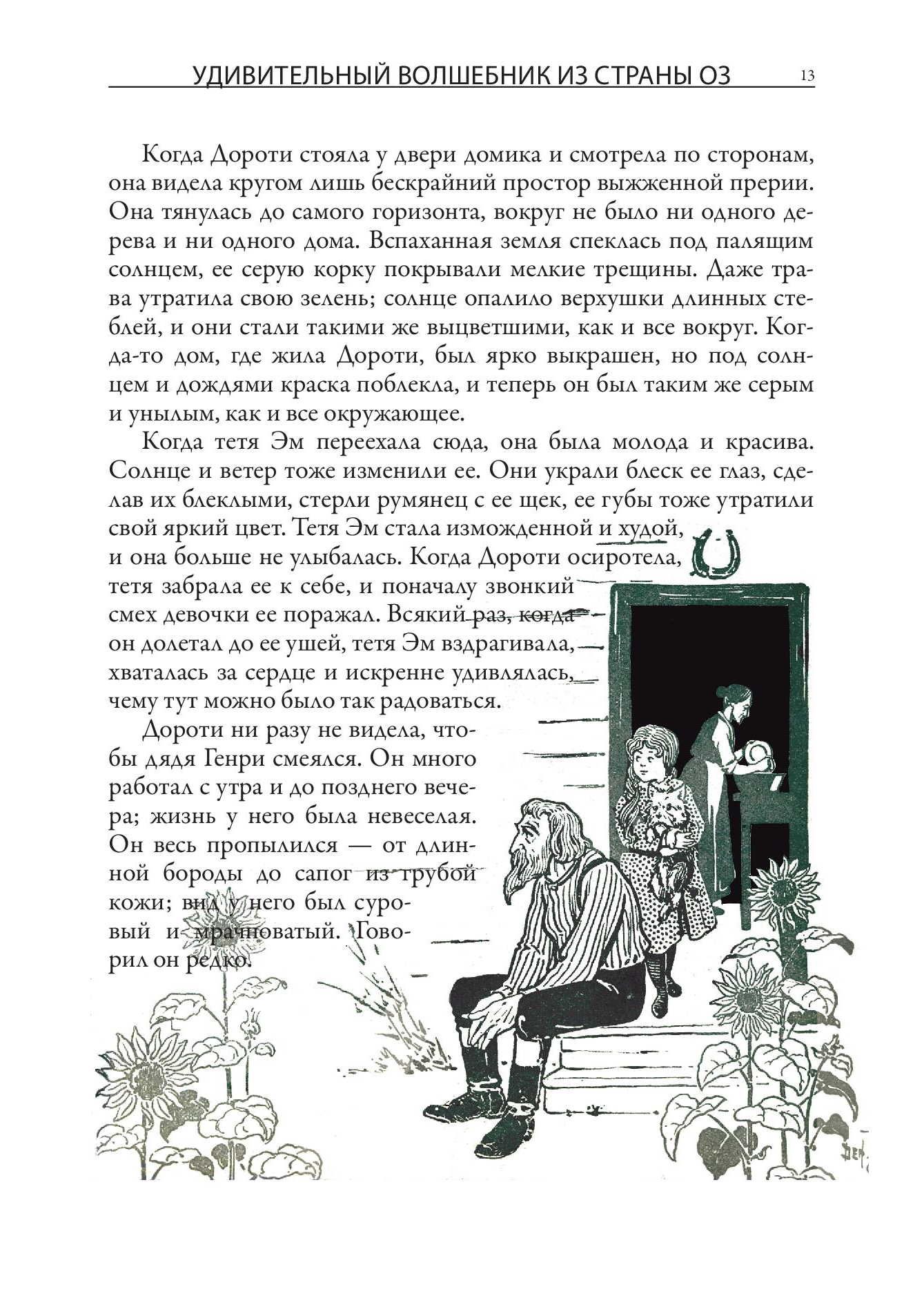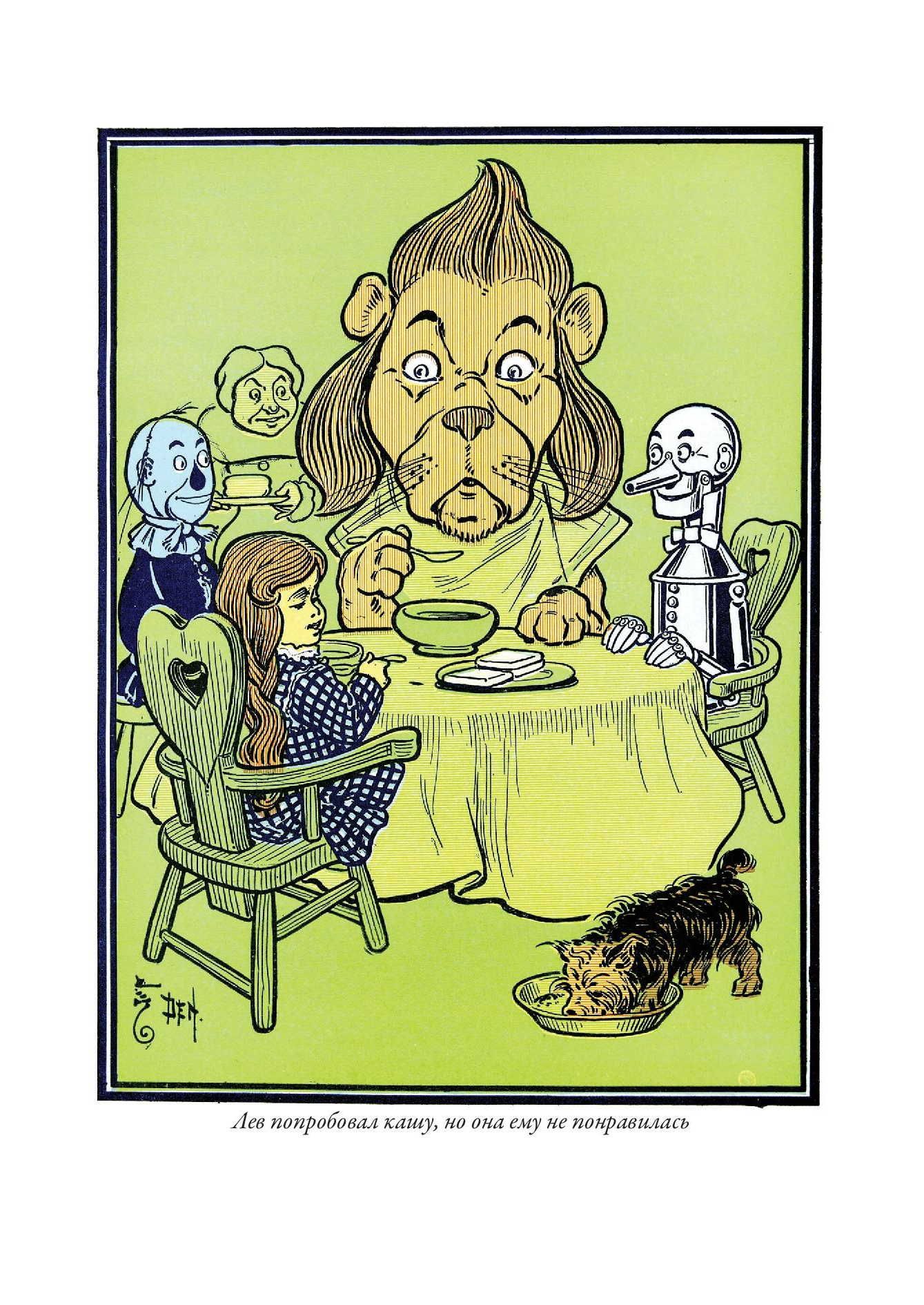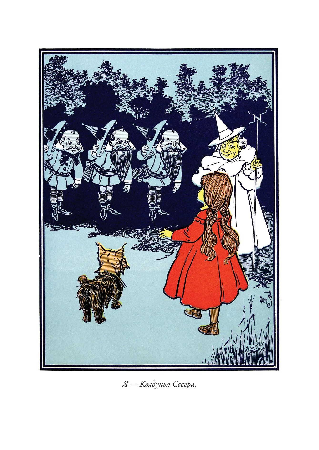 Первое издание истории про волшебника из страны Оз вышло с иллюстрациями Уильяма Дэнслоу. Они украшают и это издание. Баум познакомился с Дэнслоу в 1893 г. К тому времени художнику было уже 37 лет, и книжным иллюстратором он себя не считал - зарабатывал на жизнь, рисуя плакаты и афиши, этикетки и экслибрисы. Однако Бауму понравилась манера Дэнслоу - тот использовал четкие контурные линии и крупные локальные пятна без плавных цветовых переходов. Такая манера и нужна была для детской книжки. Баум оказался прав - его история про Дороти, Пугало и Железного Дровосека с рисунками Дэнслоу вскоре стала бестселлером, а для самого художника сотрудничество с Баумом стало вершиной карьеры. Баум взялся писать новые книги про страну Оз. Их иллюстрировал уже другой художник - Джон Ри Нилл. Он начинал свою карьеру, рисуя комиксы для одной из филадельфийских газет. Как и в случае с Дэнслоу, иллюстрации к историям Фрэнка Баума о волшебной стране Оз сделали его известным в США. Нилл продолжал работу над ними даже после кончины самого Фрэнка, когда новые книги о приключениях героев в стране Оз продолжила писать Рут Томпсон. Когда же она отошла от этой работы, Нилл сам придумал еще несколько историй про Страну Оз и сам же их проиллюстрировал.