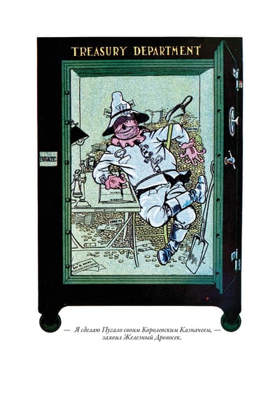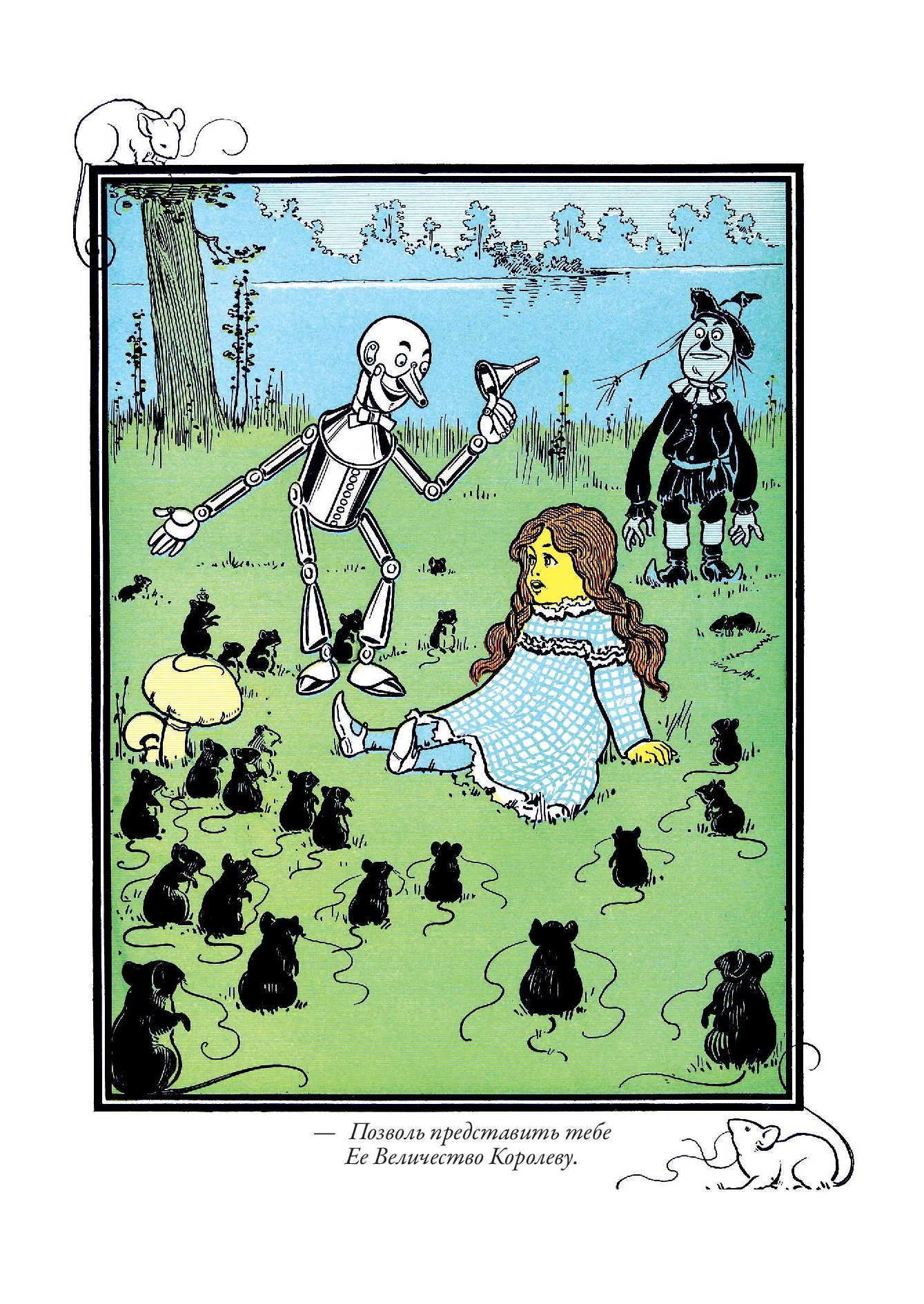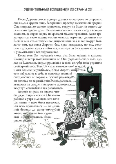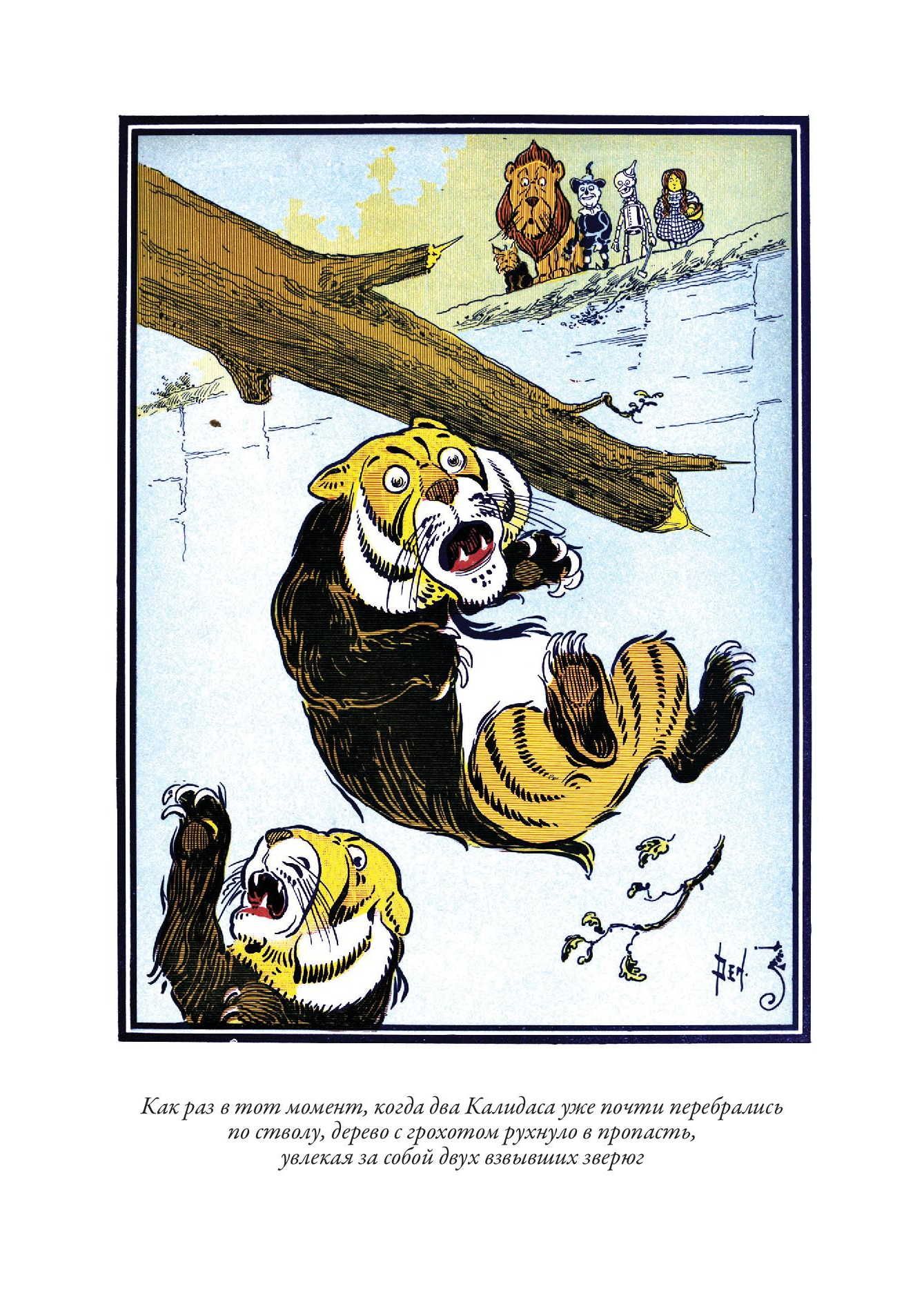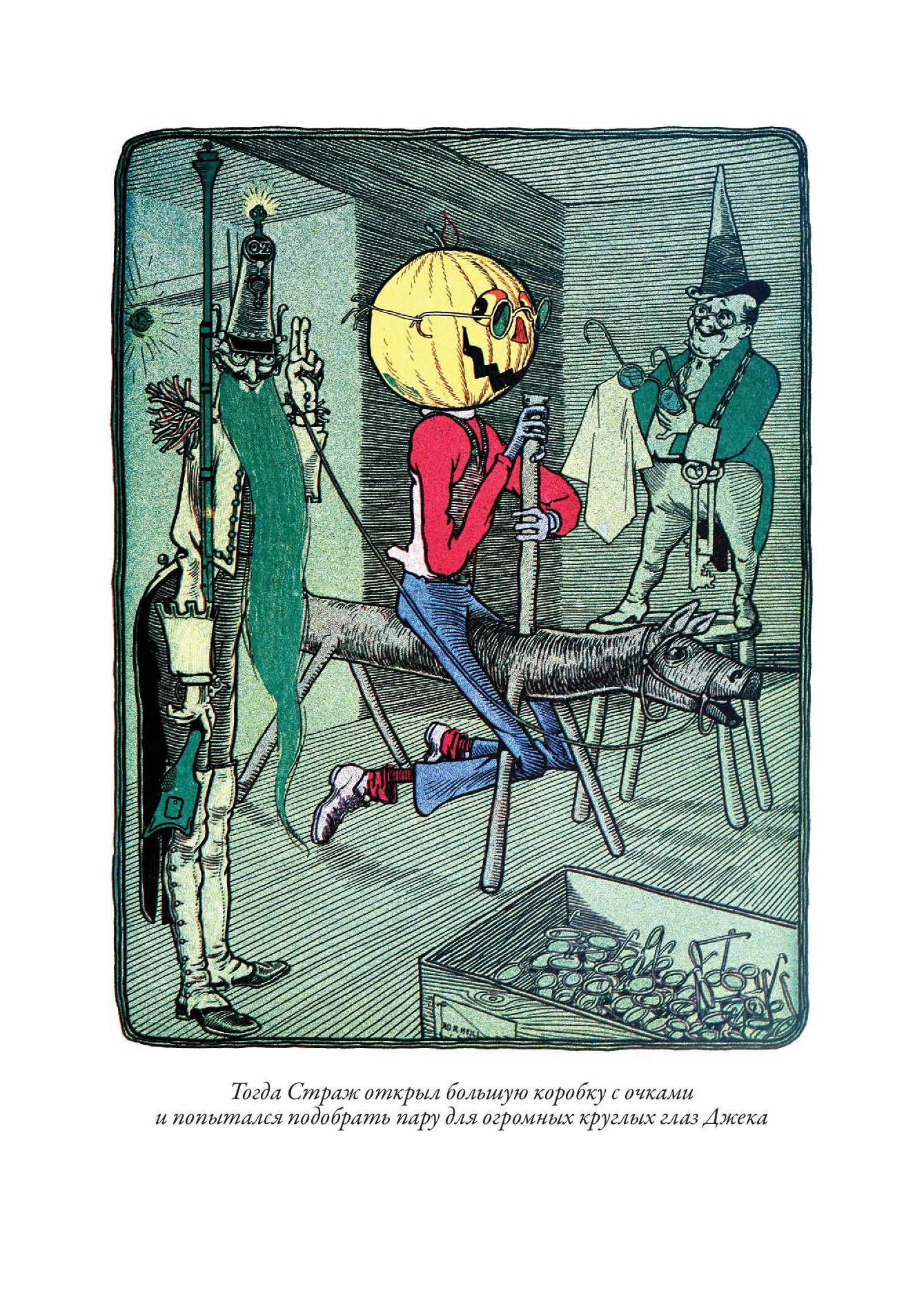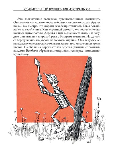 Первое издание истории про волшебника из страны Оз вышло с иллюстрациями Уильяма Дэнслоу. Они украшают и это издание. Баум познакомился с Дэнслоу в 1893 г. К тому времени художнику было уже 37 лет, и книжным иллюстратором он себя не считал - зарабатывал на жизнь, рисуя плакаты и афиши, этикетки и экслибрисы. Однако Бауму понравилась манера Дэнслоу - тот использовал четкие контурные линии и крупные локальные пятна без плавных цветовых переходов. Такая манера и нужна была для детской книжки. Баум оказался прав - его история про Дороти, Пугало и Железного Дровосека с рисунками Дэнслоу вскоре стала бестселлером, а для самого художника сотрудничество с Баумом стало вершиной карьеры. Баум взялся писать новые книги про страну Оз. Их иллюстрировал уже другой художник - Джон Ри Нилл. Он начинал свою карьеру, рисуя комиксы для одной из филадельфийских газет. Как и в случае с Дэнслоу, иллюстрации к историям Фрэнка Баума о волшебной стране Оз сделали его известным в США. Нилл продолжал работу над ними даже после кончины самого Фрэнка, когда новые книги о приключениях героев в стране Оз продолжила писать Рут Томпсон. Когда же она отошла от этой работы, Нилл сам придумал еще несколько историй про Страну Оз и сам же их проиллюстрировал.