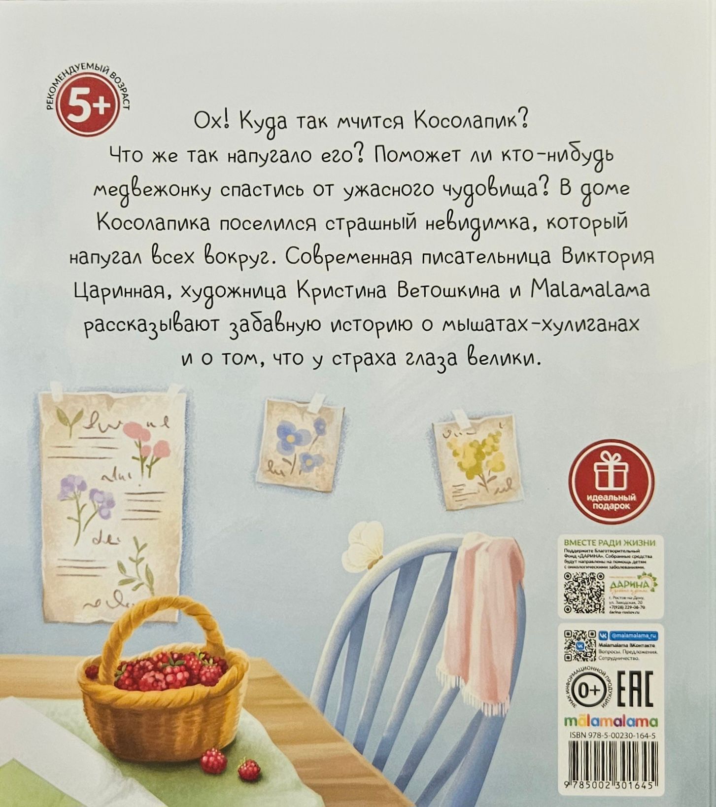 В серии «Уютные книжки» мы собрали для вас добрые сказки современных писателей, которые будет интересно читать и детям и взрослым. Сказка «Косолапик и лесной невидимка» детской писательницы Виктории Царинной рассказывает о том, как лесные зверята испугались неведомую невидимку. Трогательный сюжет и красочные иллюстрации подарят вам и вашему малышу незабываемые эмоции и создадут чудесную атмосферу, стоит только открыть книжку.